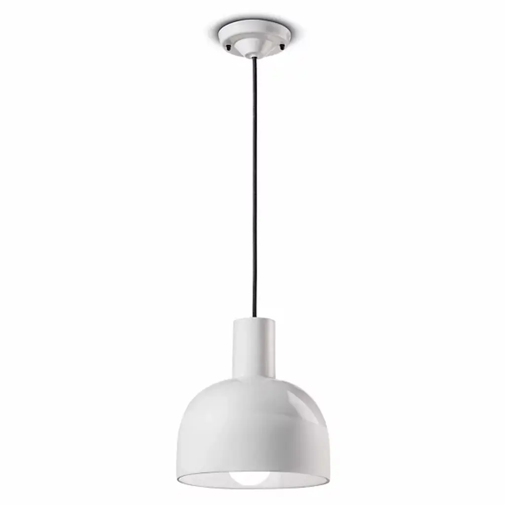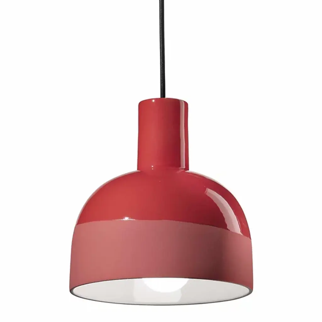The Caxixi Pendant is a simple yet lively piece by Ferroluce, handmade in Italy. Inspired by the carioca rhythms created in Brazilian music, the ceramic bodice of this pendant features a contrast of finishing textures, one of those being a luxe crystalline bath. The intricate hand of the ceramists can be seen in the subtleties from piece to piece, making each one unique and worthy of collection. The shade's dome shape and white interior help disperse a comfortable down glow.