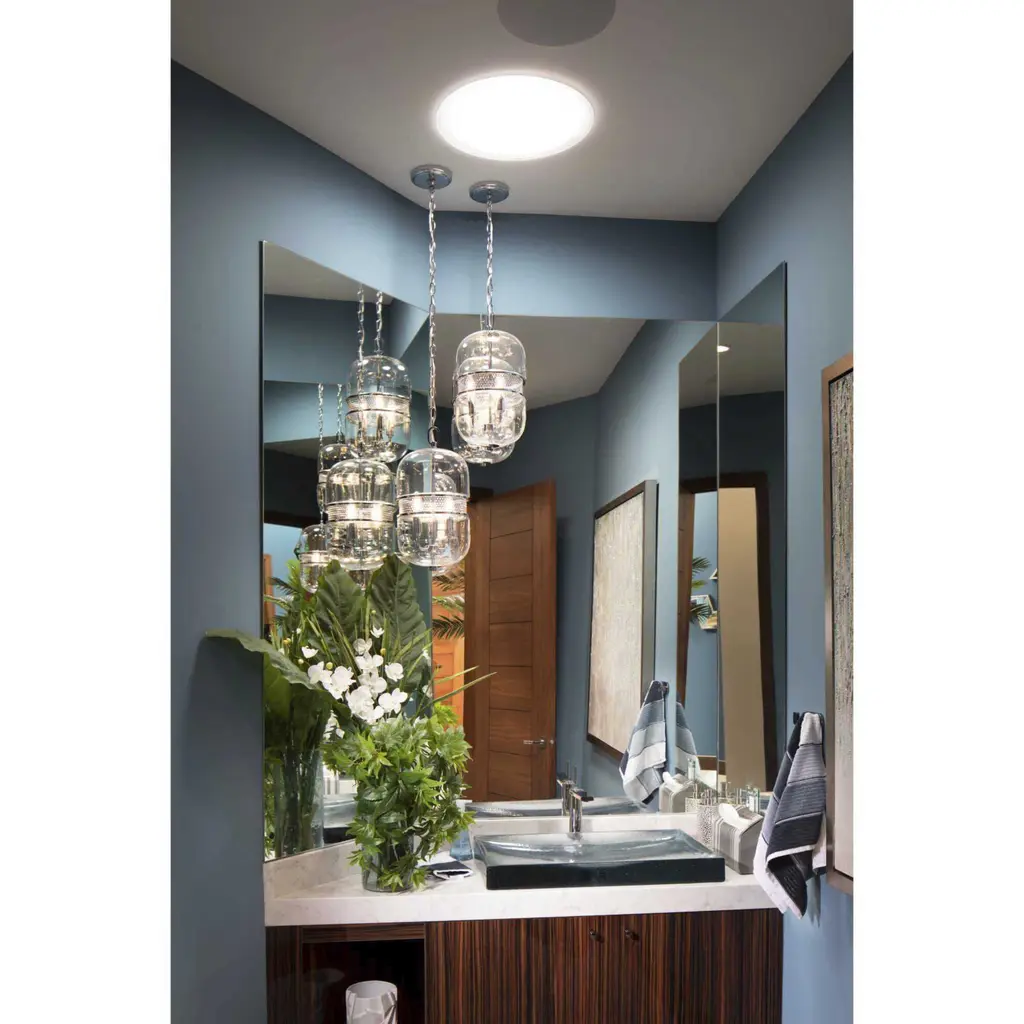 Cayce’s capsule silhouette showcases an interior candelabra cluster. An interlocking hexagonal design gracefully adorns the middle of the glass to add visual interest. This three-light pendant is in a beautiful Chrome finish. Flush with personality, the Cayce Collection pendant provides a unique design style suitable for a variety of interiors, including Modern, Farmhouse, Urban Industrial and Luxe.