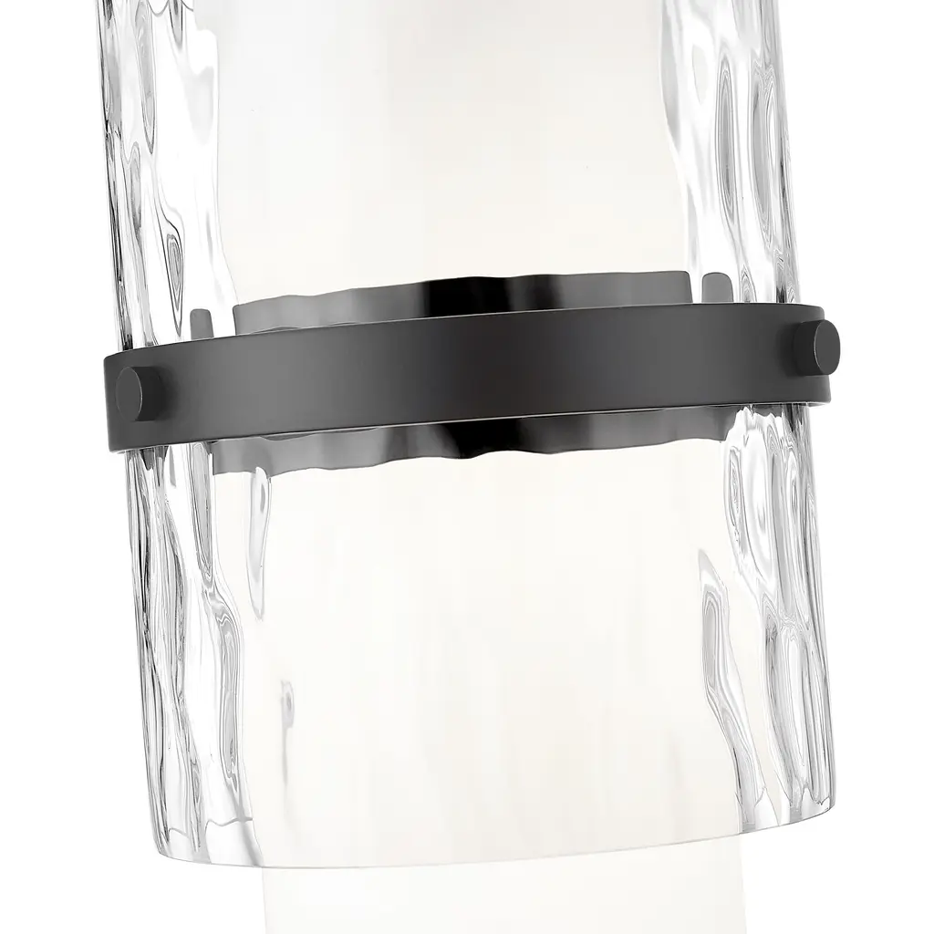 A modern one-light pendant in always stylish matte black introduces sophisticated energy and texture to your home decor. Superbly designed, it centers on a cylinder of etched opal glass that diffuses light beautifully and is augmented with a shorter cylinder of textured clear glass and a decorative cuff in a matching finish. Simply stunning in series over a kitchen island or alone in your den or living room.