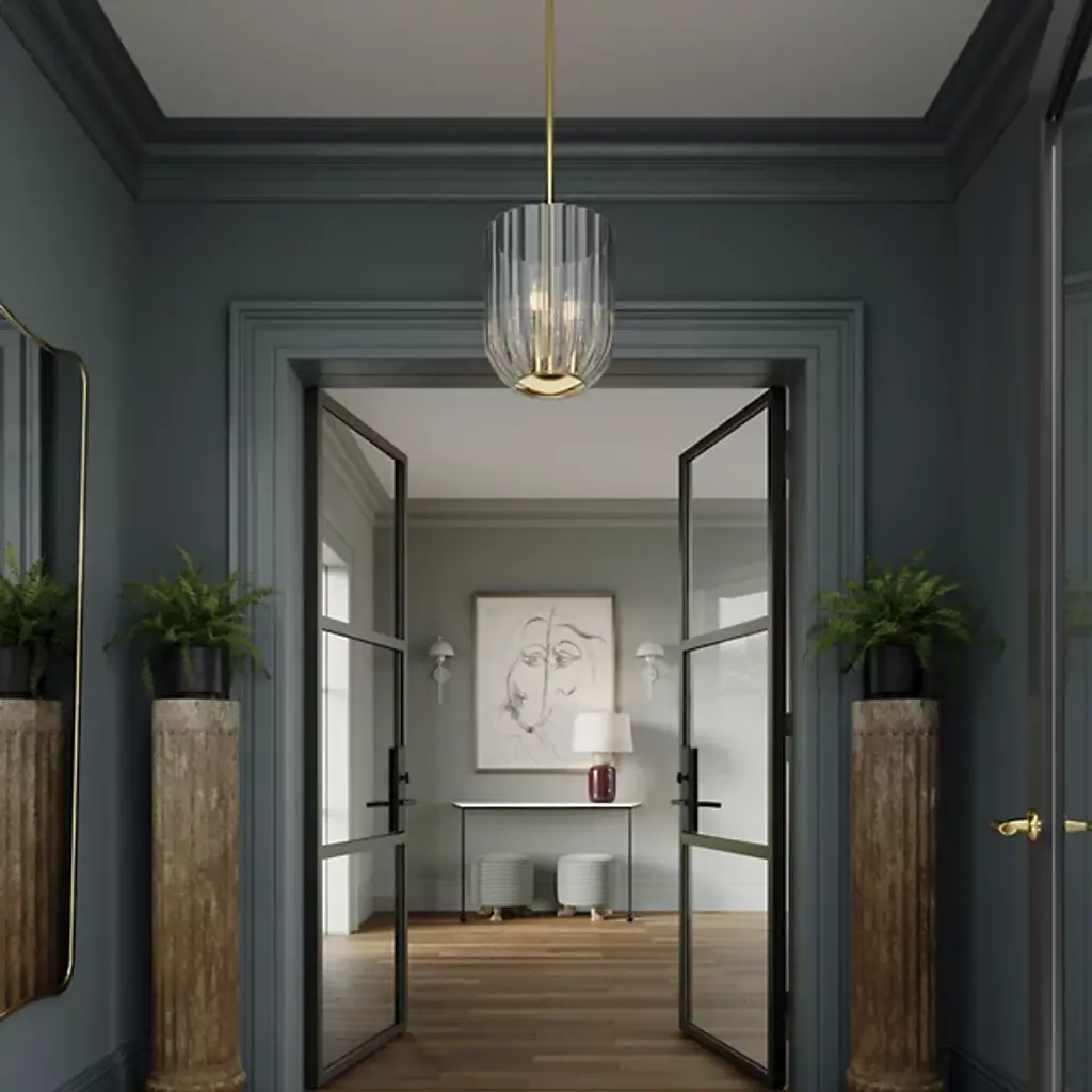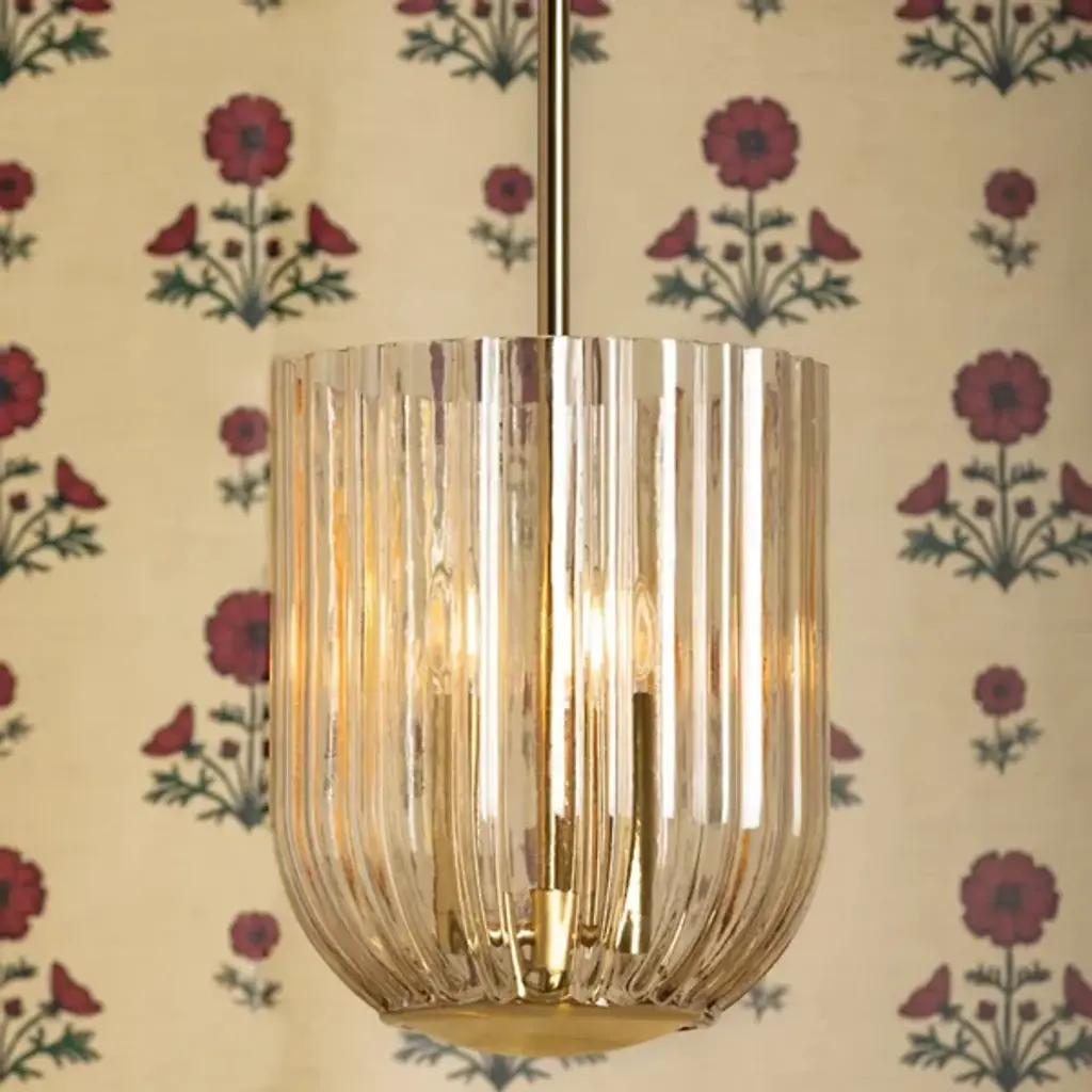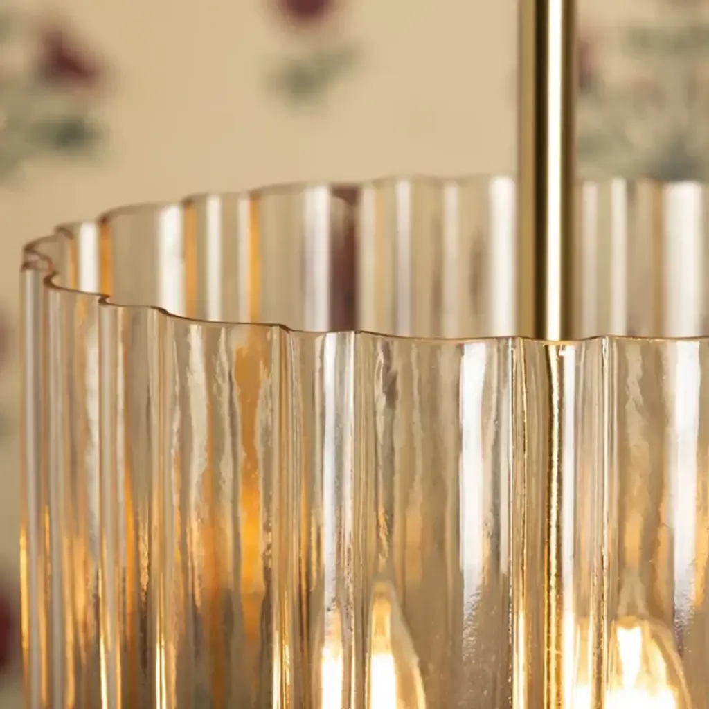 The Cece Pendant from Mitzi offers a floral-inspired lantern design, illuminating your living spaces with a gentle, ambient glow. The fixture features a large, delicately scalloped shade crafted from champagne glass surrounding damp-listed lamping that diffuses light beautifully throughout the room. Complementing the translucent glass, the Aged Brass rod provides a striking contrast to the curved softness of the shade, enhancing its visual appeal. Designed by Zoe Feldman, this pendant is constructed from durable steel with glass shades, blending seamlessly with Transitional style decor.