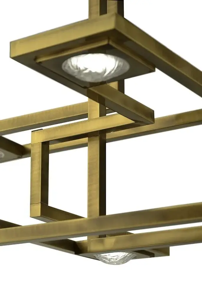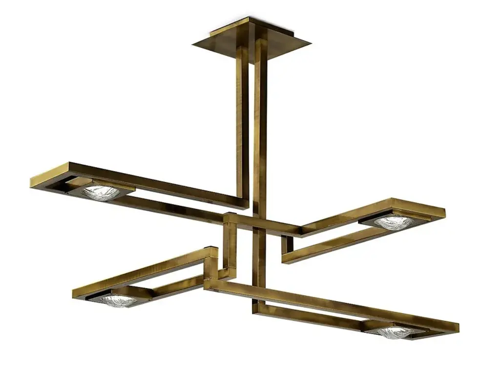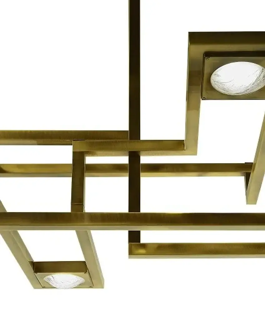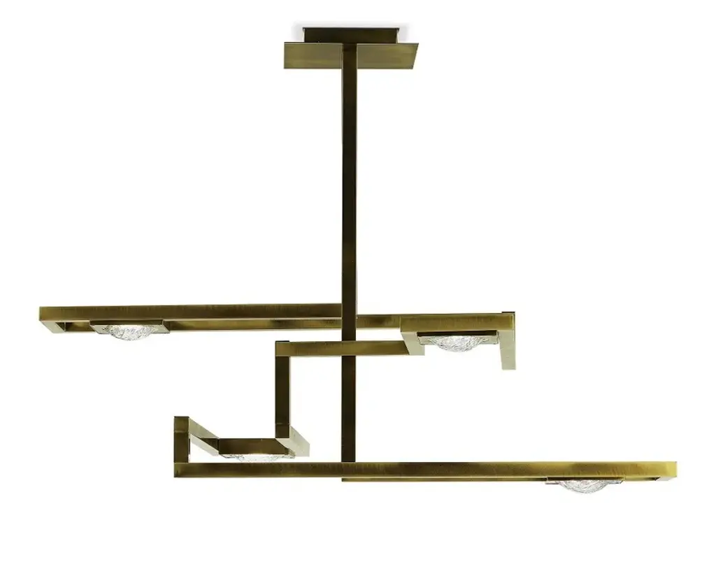 Square suspension lamp with four plexyglass lents frozen effect.Cecile - Volumes of different thicknesses and materials are combined to create an original collection of lighting. The juxtaposition of several elements forms various chromatic solutions.