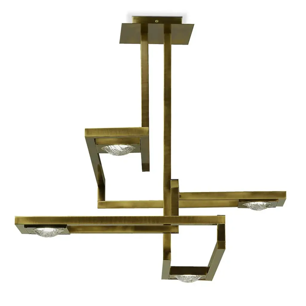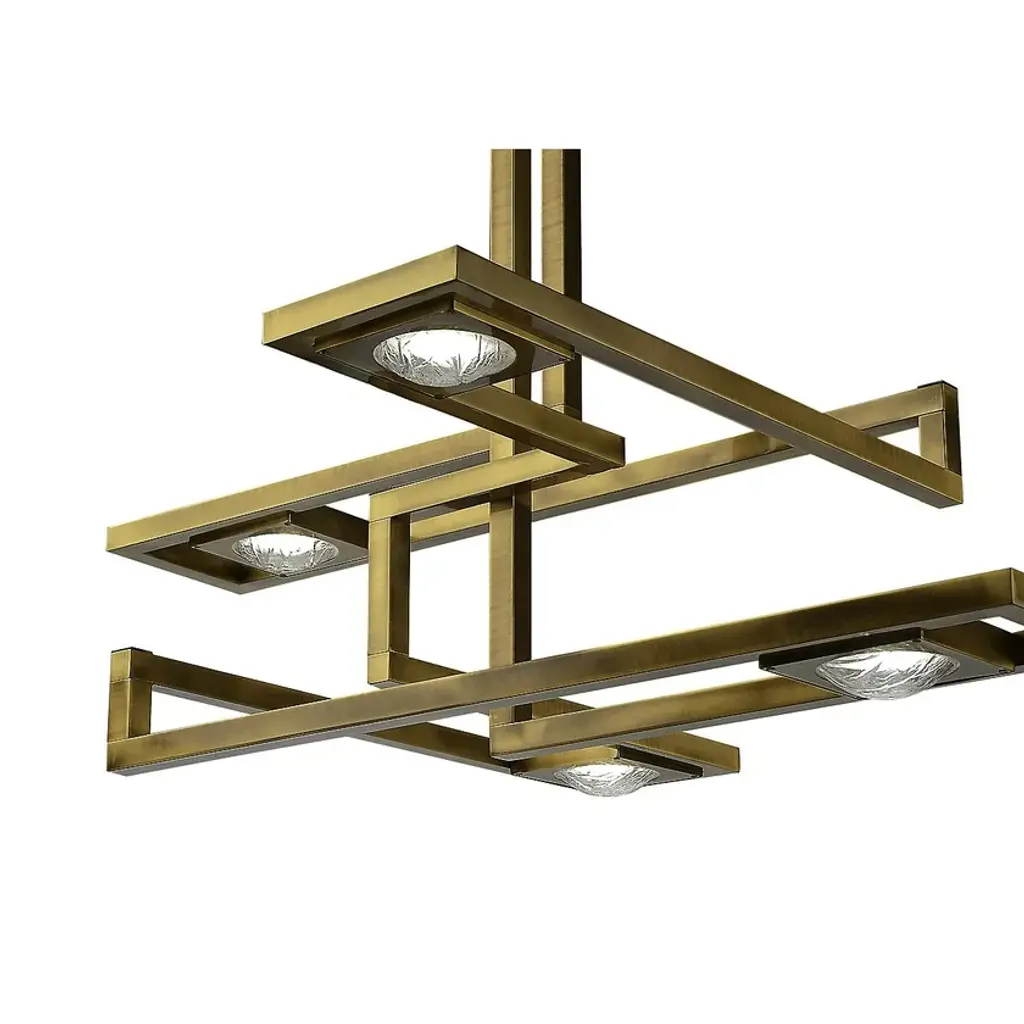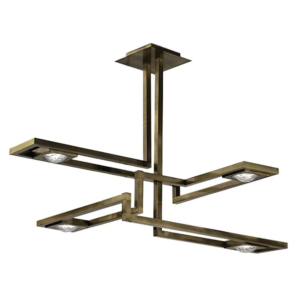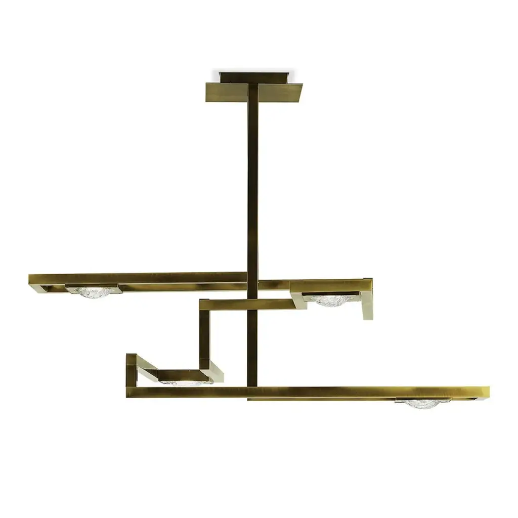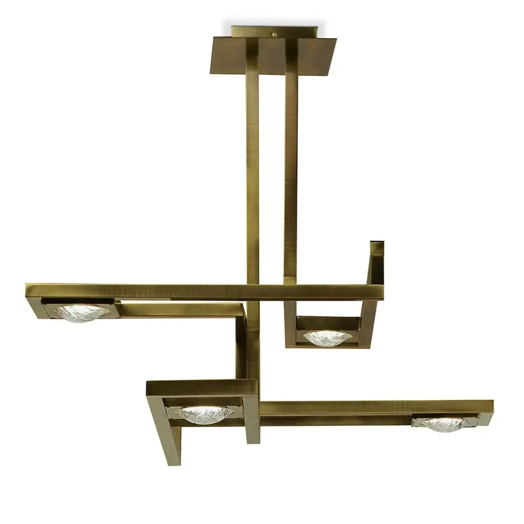 Rectangular suspension lamp with four plexyglass lents frozen effect.Cecile - Volumes of different thicknesses and materials are combined to create an original collection of lighting. The juxtaposition of several elements forms various chromatic solutions.