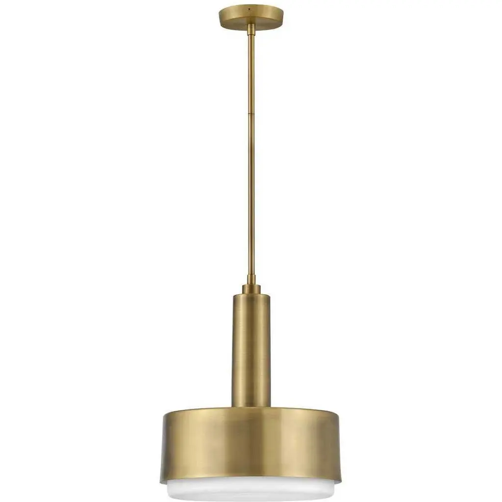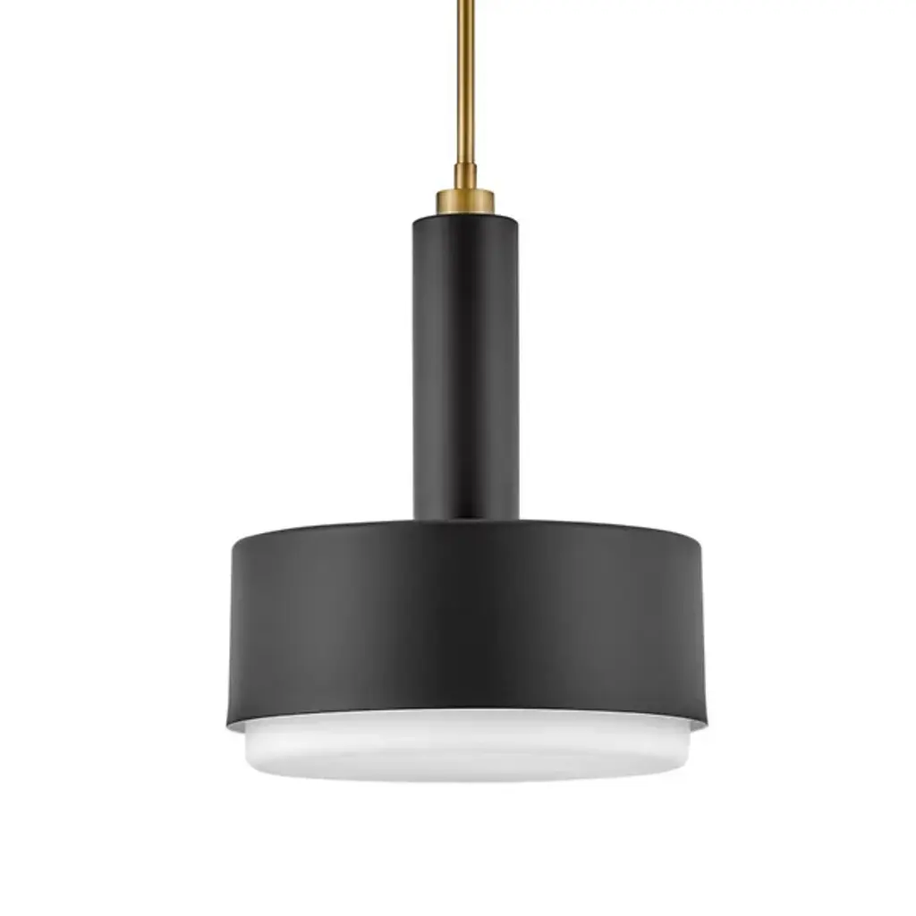 Add a stylish accent to your inside spaces with the long and elegant lines of the Cedric Pendant from Hinkley. It’s suspended from above by a sleek disc canopy and slender steel stem, which terminates into a cylindrical body that seats both the fixture’s shade and lamping. The shade body and drum shade itself are both made from elegant, matte-textured metal that conceals potent lamping from the sides, directing it into the etched opal glass diffuser below. This diffuser cuts glare from above, mellowing it into an even ambiance that suffuses its surroundings.