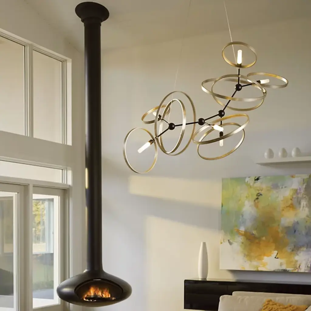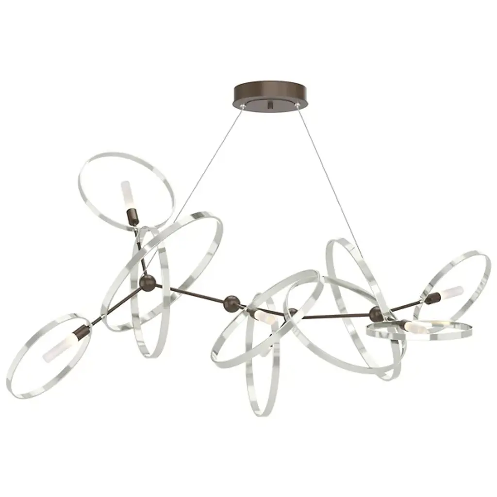 Named after the Latin meaning for 'of the heavens', the Hubbardton Forge Celesse Pendant features a futuristic and unique option that is sure to make a statement. The steel spine hosts a series of different sizes aluminum rings, all of which are adjustable for a custom look. The illumination radiates throughout the space through the frosted glass tubes, creating a trendy and innovative atmosphere.