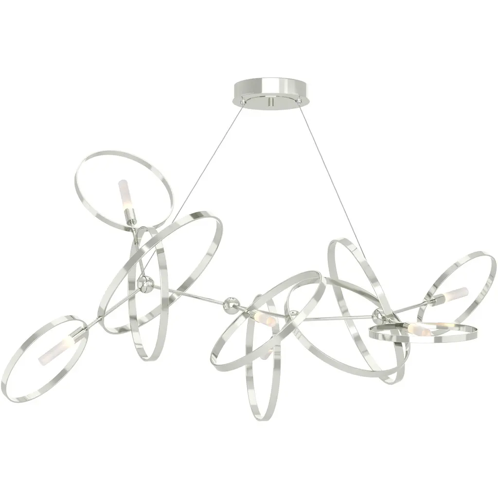 Evoking celestial beauty, the Celesse Pendant Light from Hubbardton Forge brings the luxury of the heavens to any space. Crafted with a steel spine and adjustable aluminum rings, this unique piece of art casts a warm, captivating glow from within its frosted glass tubes. Boasting an almost futuristic style, this chic pendant light adds a touch of sophistication to any room. Highlights