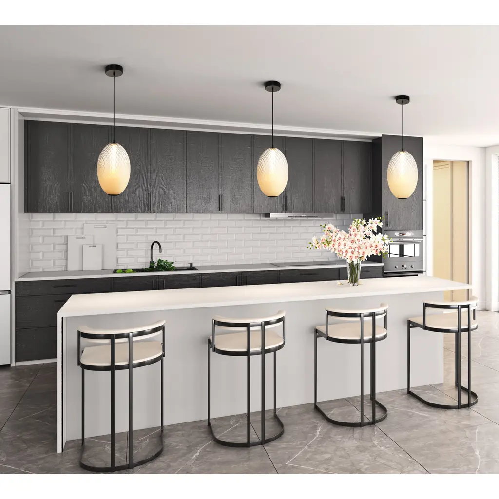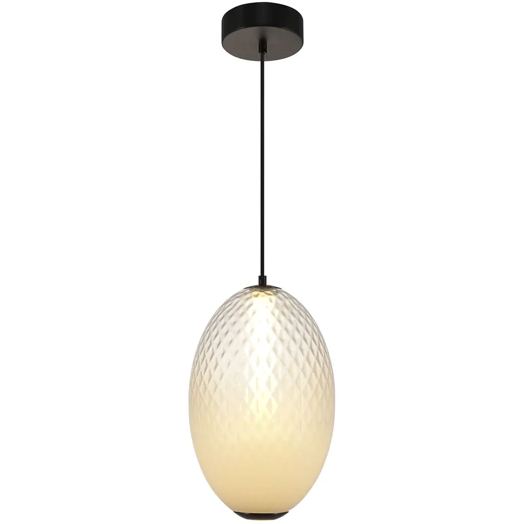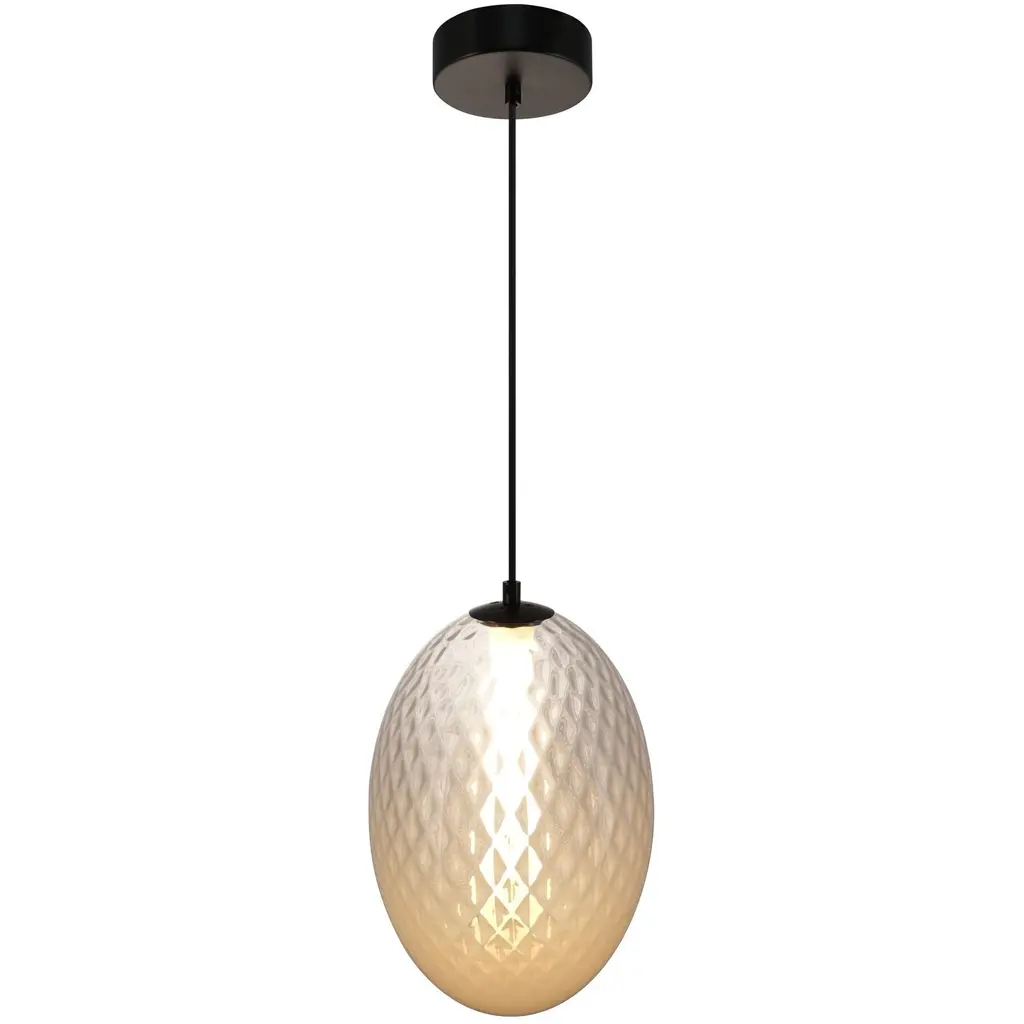 The LED pendant from the Celeste collection is a symphony of sophistication, featuring a mesmerizing diamond-patterned ombre white glass that gracefully encases an illuminated inner white tube. Its gunmetal-finished metalwork adds a rich, modern allure, making it a standout centerpiece for any room. A clever peek-hole design at the bottom casts a focused beam of light downward, while the ambient glow from the sides creates a warm and inviting atmosphere. This elegant fixture is a harmonious blend of form and function, perfect for elevating your space with timeless charm. The textile wire cover is designed for elegance and ease height adjustment.