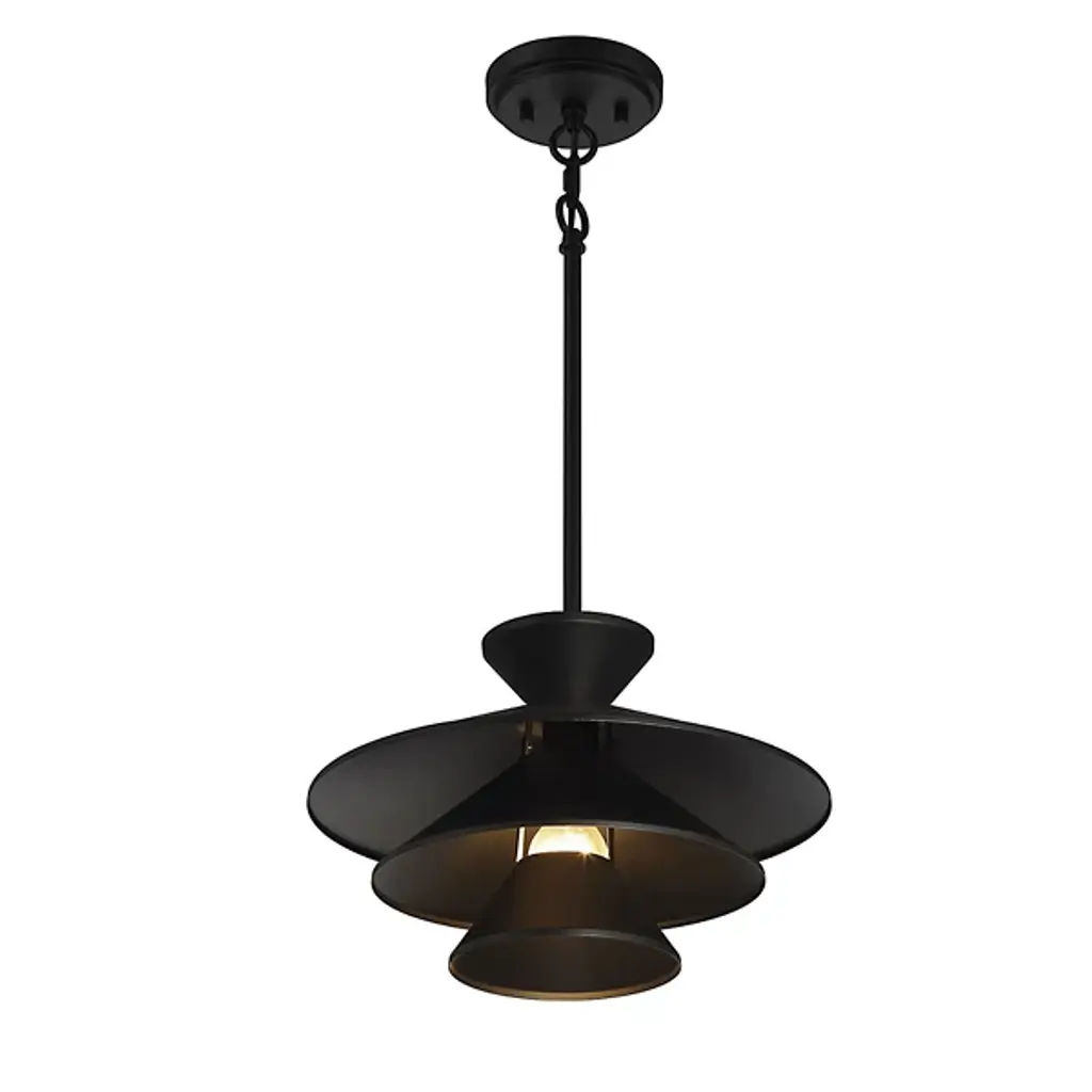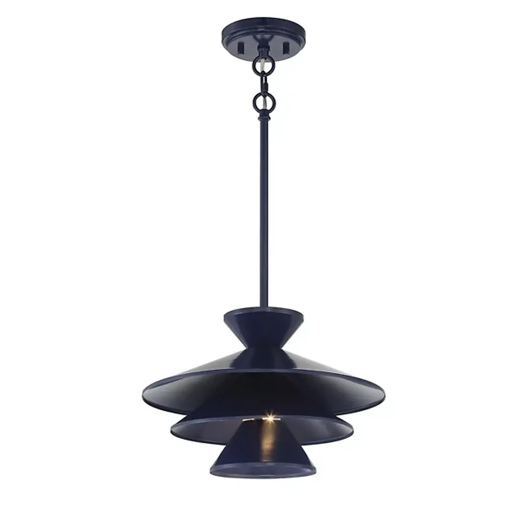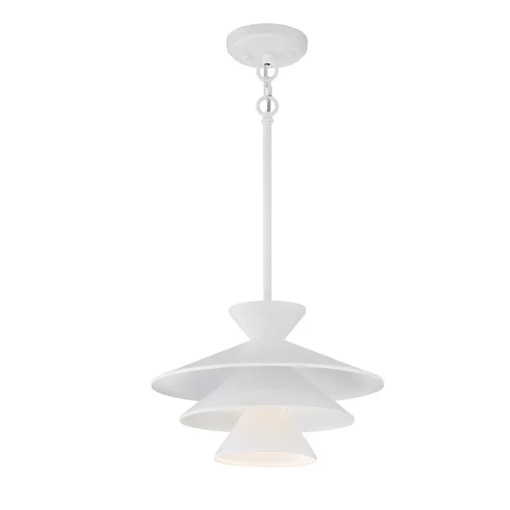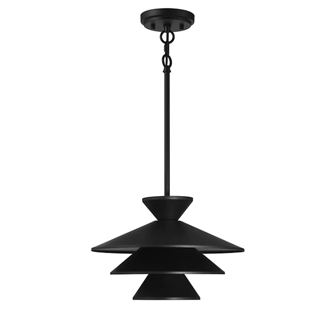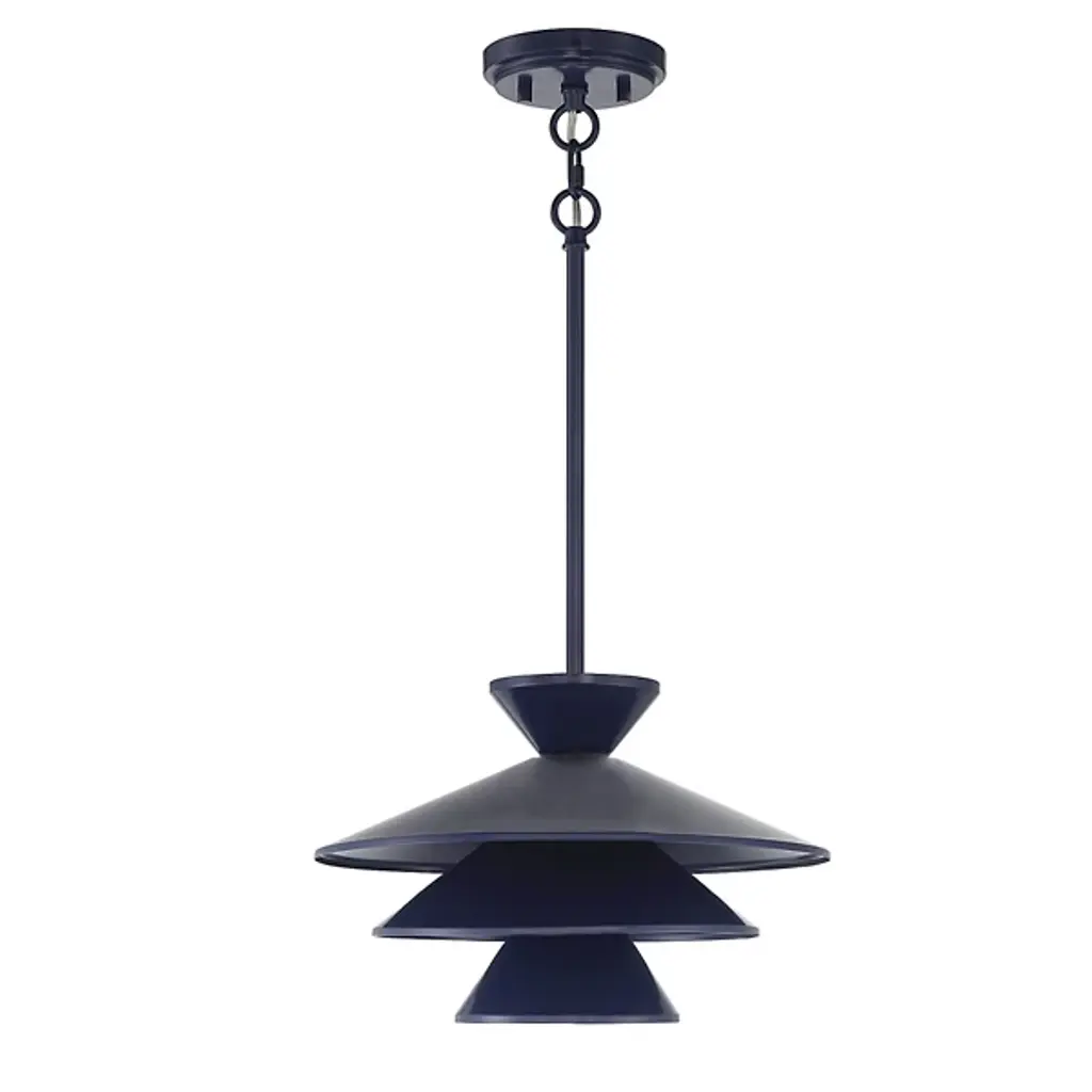 The Celeste Pendant by Alder & Ore is a sleek and stunning piece that is sure to dress up the spaces it illuminates. Simply suspended from a single stem, this design features a tapered top and a layered set of conical shades that are nestled within one another, playfully shaping a layer of light downwards onto surroundings. A uniform finish gives this cool design a tailored, modern look that brings a fun and functional touch to rooms.