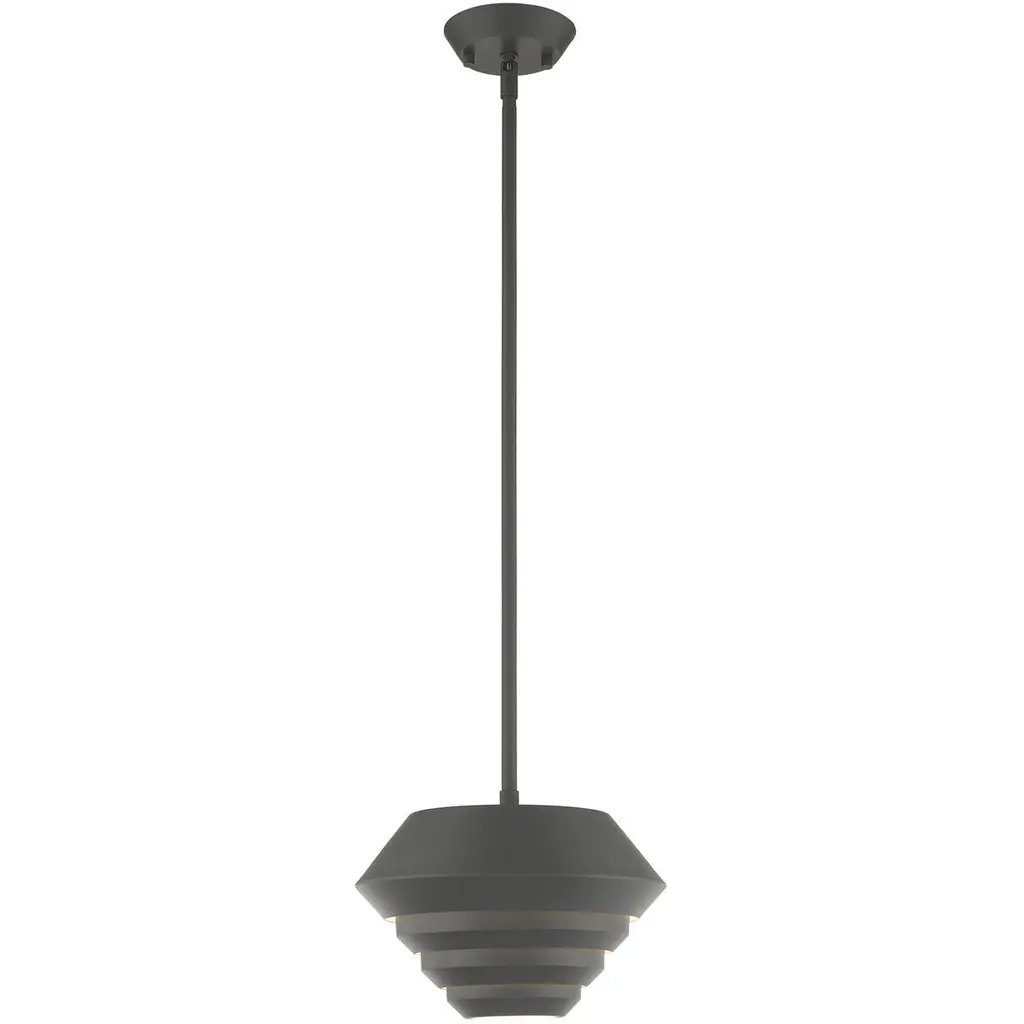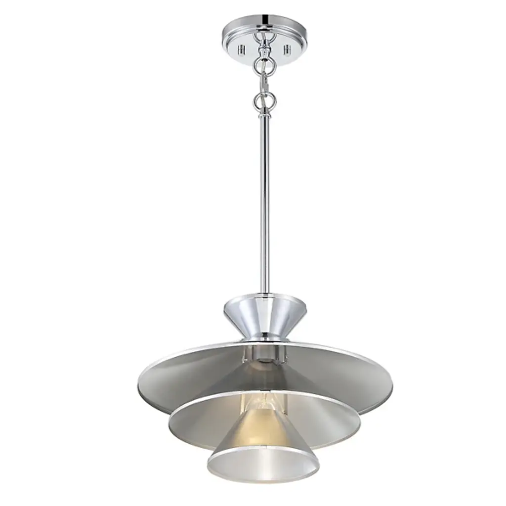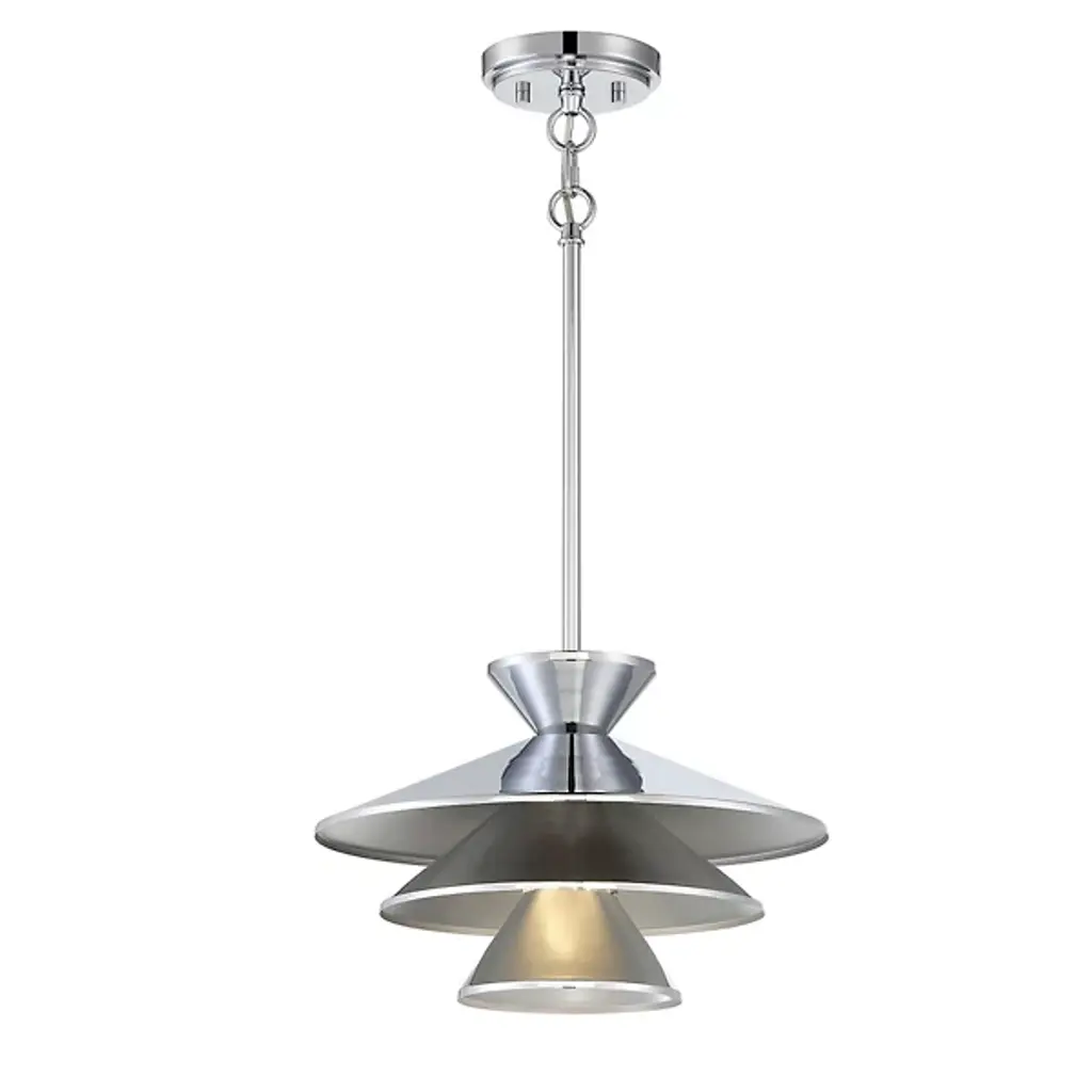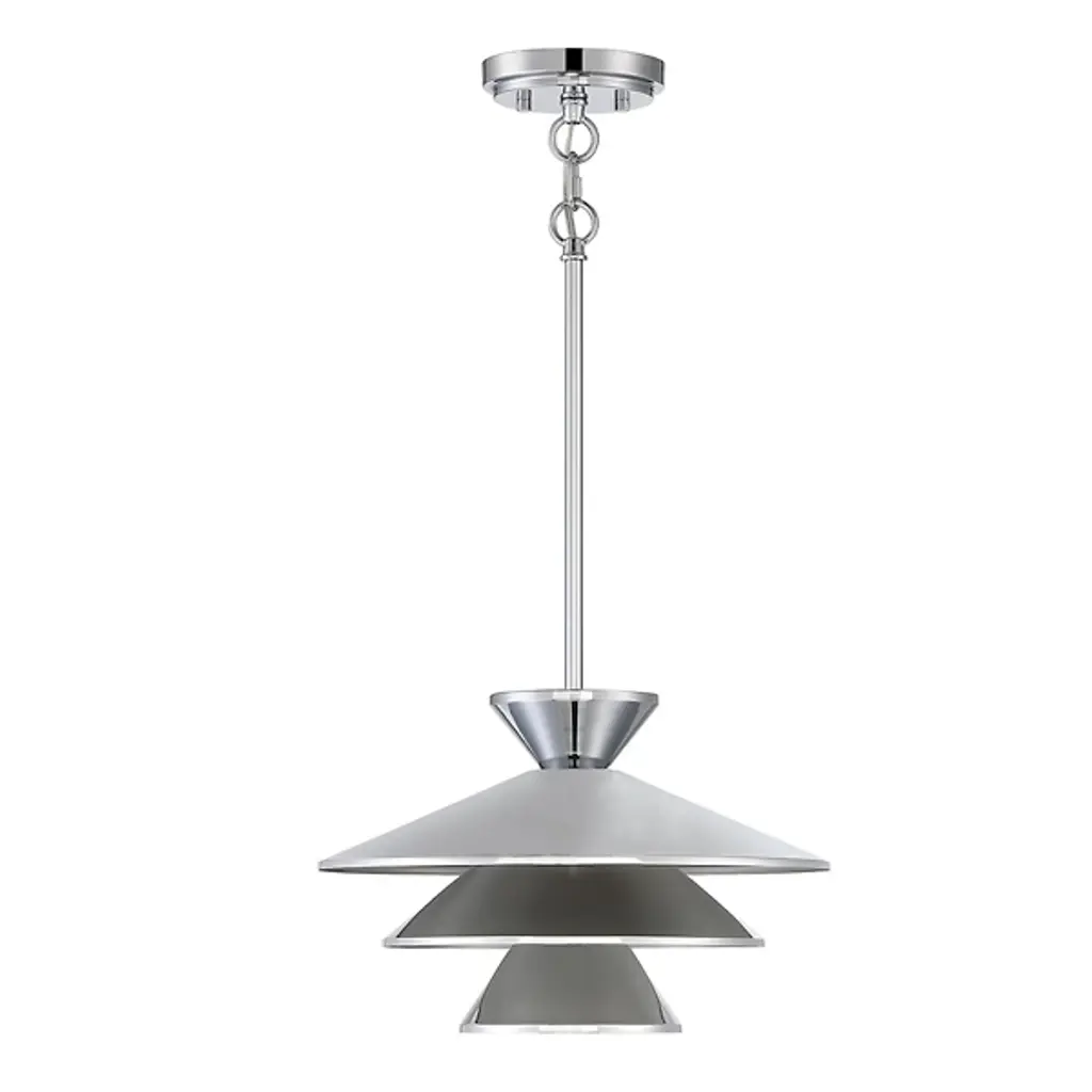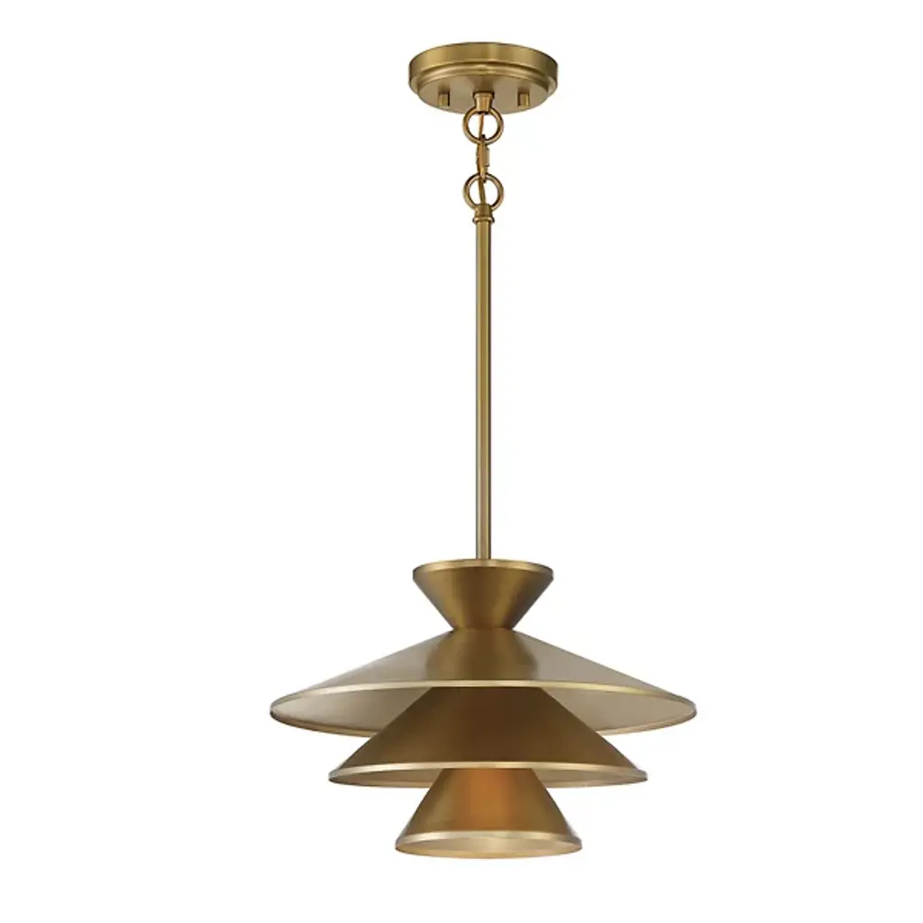 The Celeste Pendant by Alder & Ore is a sleek and stunning piece that is sure to dress up the spaces it illuminates. Simply suspended from a single stem, this design features a tapered top and a layered set of conical shades that are nestled within one another, playfully shaping a layer of light downwards onto surroundings. A uniform finish gives this cool design a tailored, modern look that brings a fun and functional touch to rooms.