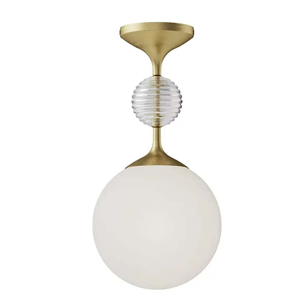 The Celia Semi-Flushmount by Alora Mood inspires those who are crafty at heart. A stunning, distinctive ribbed-glass-bead element adorns a fresh and feminine frame. A fine glass globe of illumination tops off this eclectic masterpiece with ease. The Celia Chandelier will be the talk of your living space, mixing texture and transitional style.