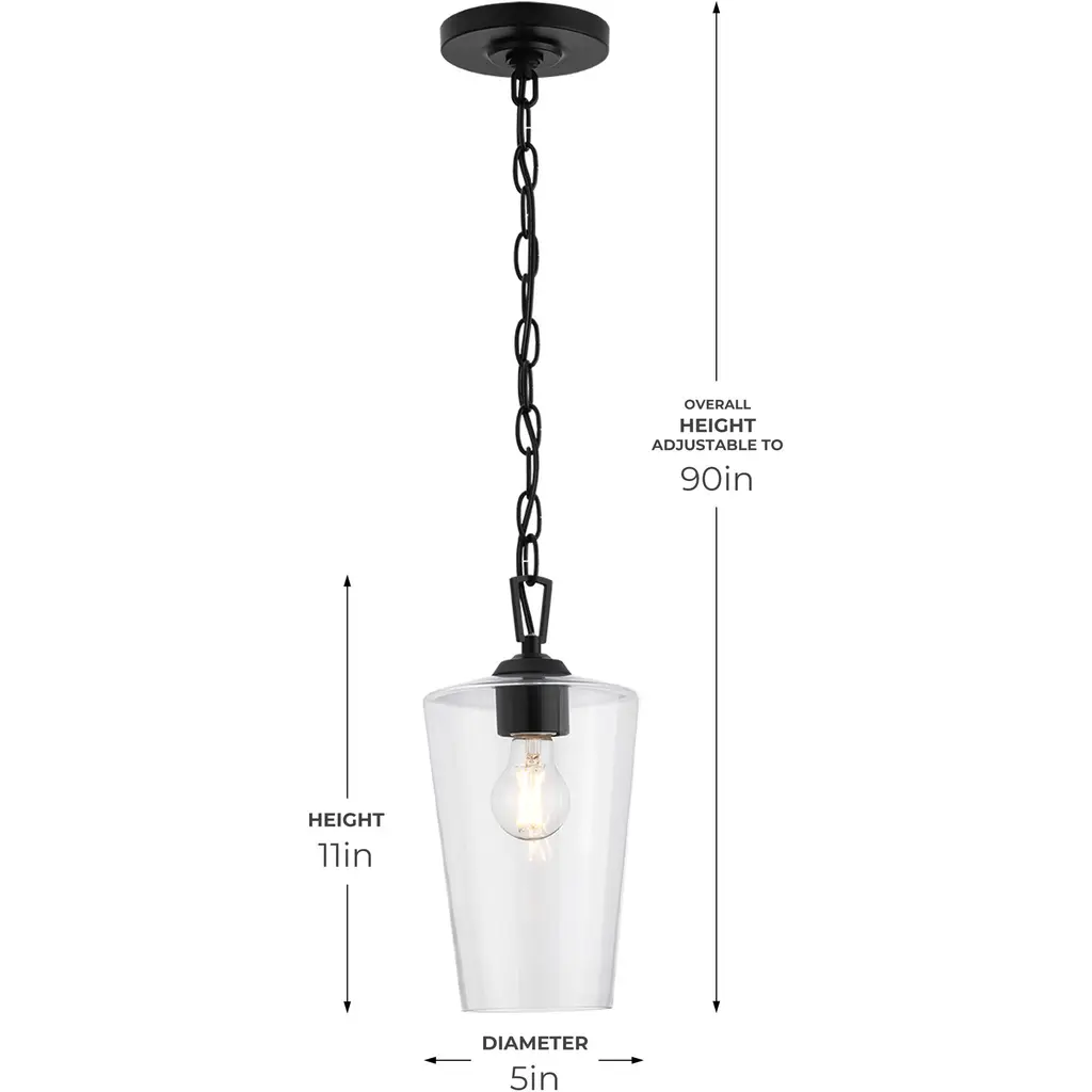 Illuminate your space with the refined elegance of the Celino 1-Light Mini-Pendant. With shades inspired by the graceful silhouette of hand-crafted crystal wine glasses, each light fixture is a testament to meticulous artistry and timeless design. The perfectly proportioned clear glass shade offers a seamless and visually stunning form that delivers bright light to the surrounding space. A sleek Black-finished chain and minimal hardware highlights the pendant's refined simplicity. Lighting from the Celino will infuse your home with a sophisticated and inviting ambiance.