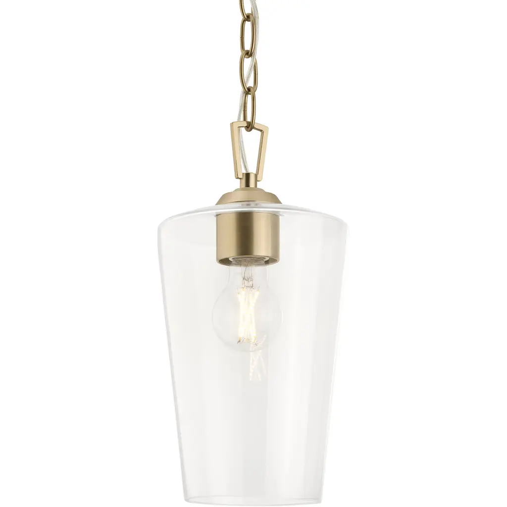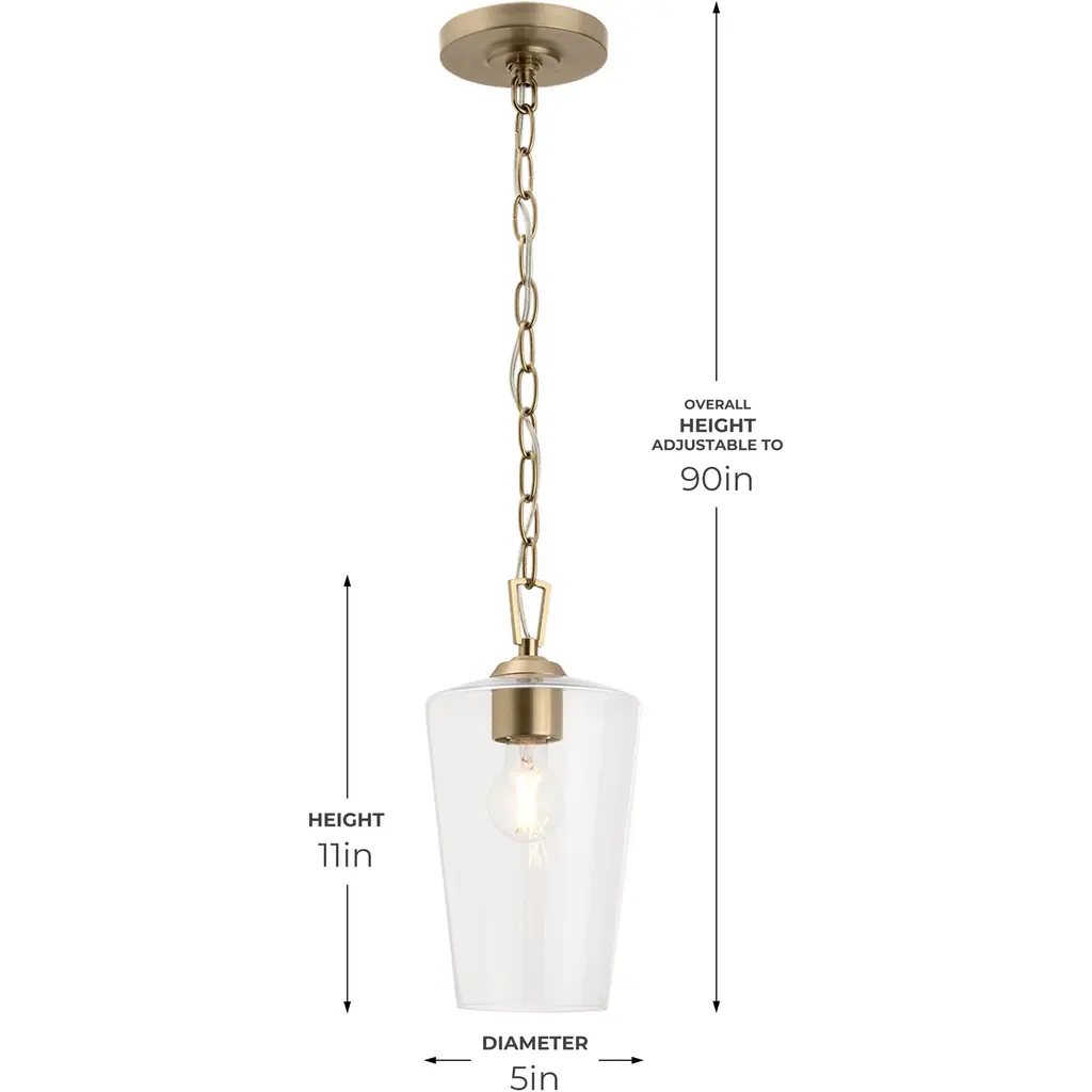 Illuminate your space with the refined elegance of the Celino 1-Light Mini-Pendant. With shades inspired by the graceful silhouette of hand-crafted crystal wine glasses, each light fixture is a testament to meticulous artistry and timeless design. The perfectly proportioned clear glass shade offers a seamless and visually stunning form that delivers bright light to the surrounding space. A sleek Champagne Bronze-finished chain and minimal hardware highlights the pendant's refined simplicity. Lighting from the Celino will infuse your home with a sophisticated and inviting ambiance.
