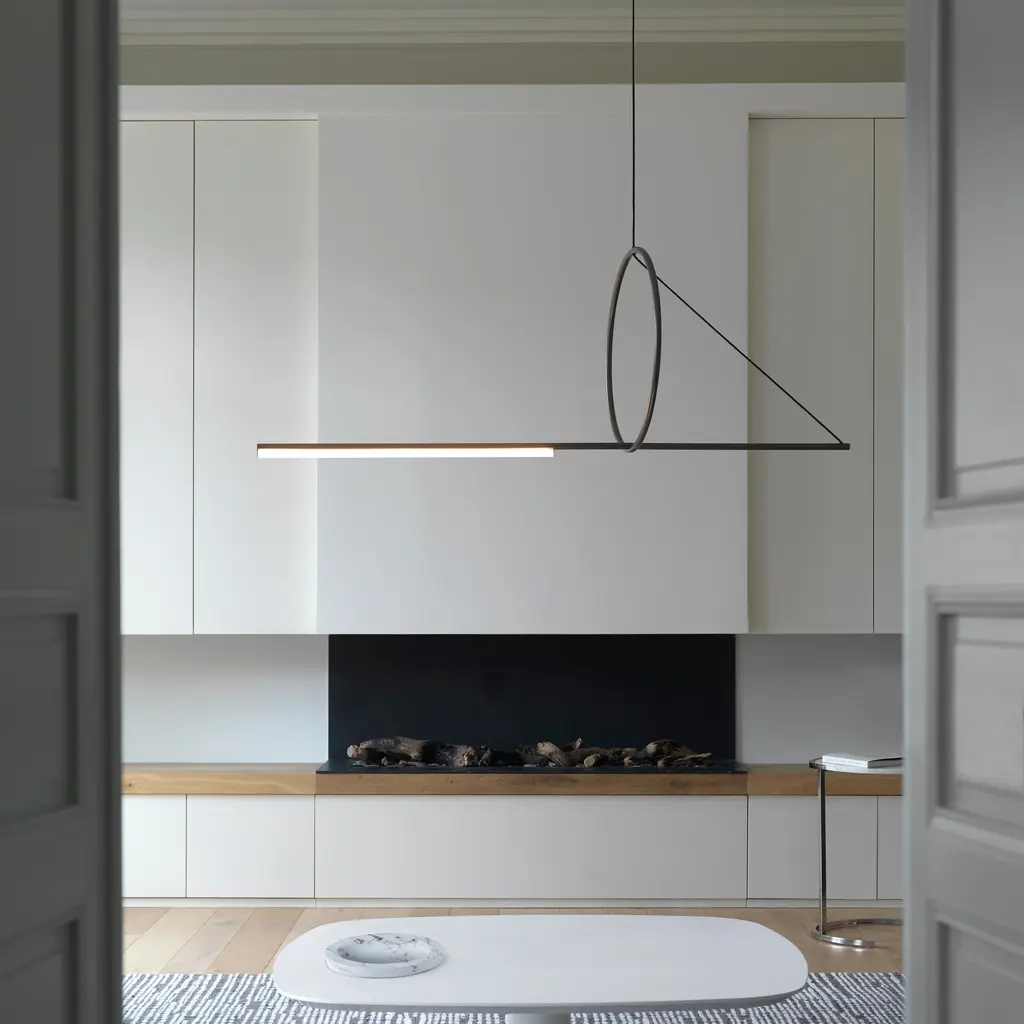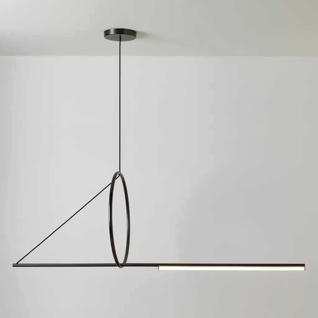 Airy and light, Cercle & Trait (Circle & Line for non-francophiles) is a mesmerizing construction, seemingly held together by a single thin wire. From cutting-edge Parisian design studio Pool—founders Léa Padovani and Sébastien Kieffer also act as artistic directors of CVL—the pendant embodies the handcrafted finesse of the French lighting firm. Featuring a tubular rod that contains the downward-directed LED light source, it maintains a delicate visual balance while spreading a warmly even glow.