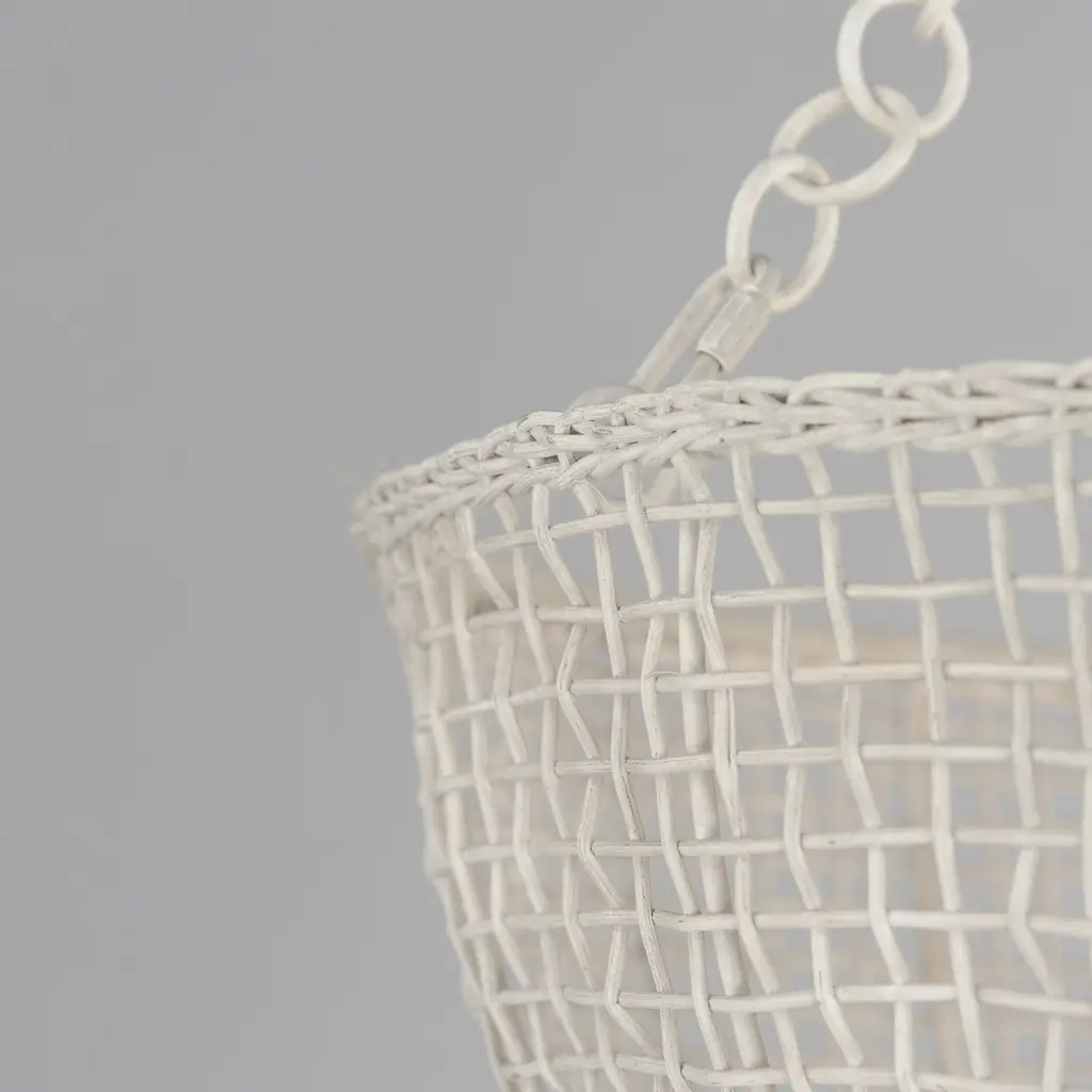Hand-woven Natural Rattan blends casual comfort with impeccable craftsmanship. Further demonstrating the artisanal touch applied to this series, two hand-painted finish options either match Weathered White on both the rattan and its metal work or contrast Natural tones with an Antique Bronze finish. Choose from various scales of pendants where in some configurations a Satin White globe shade is included to diffuse the light source within. An ADA wall sconce completes the collection.