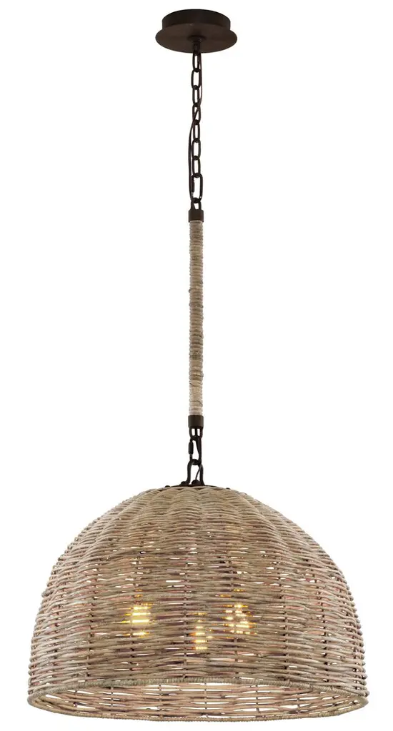 The Cestino-Invert Bowl Pendant from Maxim Lighting combines laid-back comfort with exceptional craftsmanship, bringing a touch of organic elegance to any space. The intricate rattan weave and durable steel construction create a beautiful balance of natural texture and lasting strength. This versatile transitional piece seamlessly blends traditional and contemporary elements, making it a perfect fit for various interior décors. Its relaxed yet refined look adds warmth and sophistication to any room.