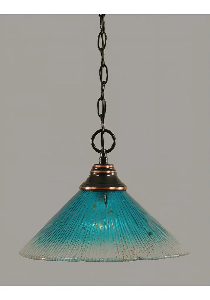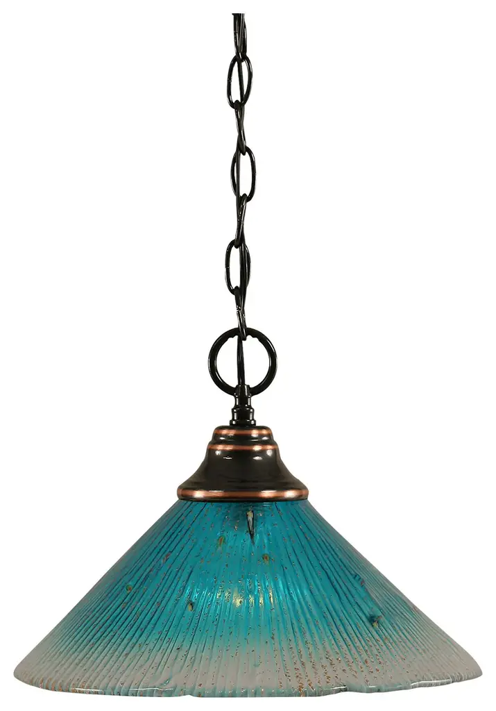 The beauty of our entire product line is the opportunity to create a look all of your own, as we now offer over 40 glass shade choices, with most being available as an option on every lighting family. So, as you can see, your variations are limitless. It really doesn't matter if your project requires Traditional, Transitional, or Contemporary styling, as our fixtures will fit most any decor.Chain Hung Pendant Shown In Black Copper Finish With 12" Teal Crystal GlassComes Standard With: Comes With 10 FT. Of Chain And 11 FT. Of WireWarranty Length: 1 YearType of Bulb: IncandescentBulb Base: MediumLamp Type: MediumBulb Included: NoNumber Of Bulbs Needed: 1Wattage: 150UL/ADA/CUL/CSA: UL/CULUL Application: Ceiling