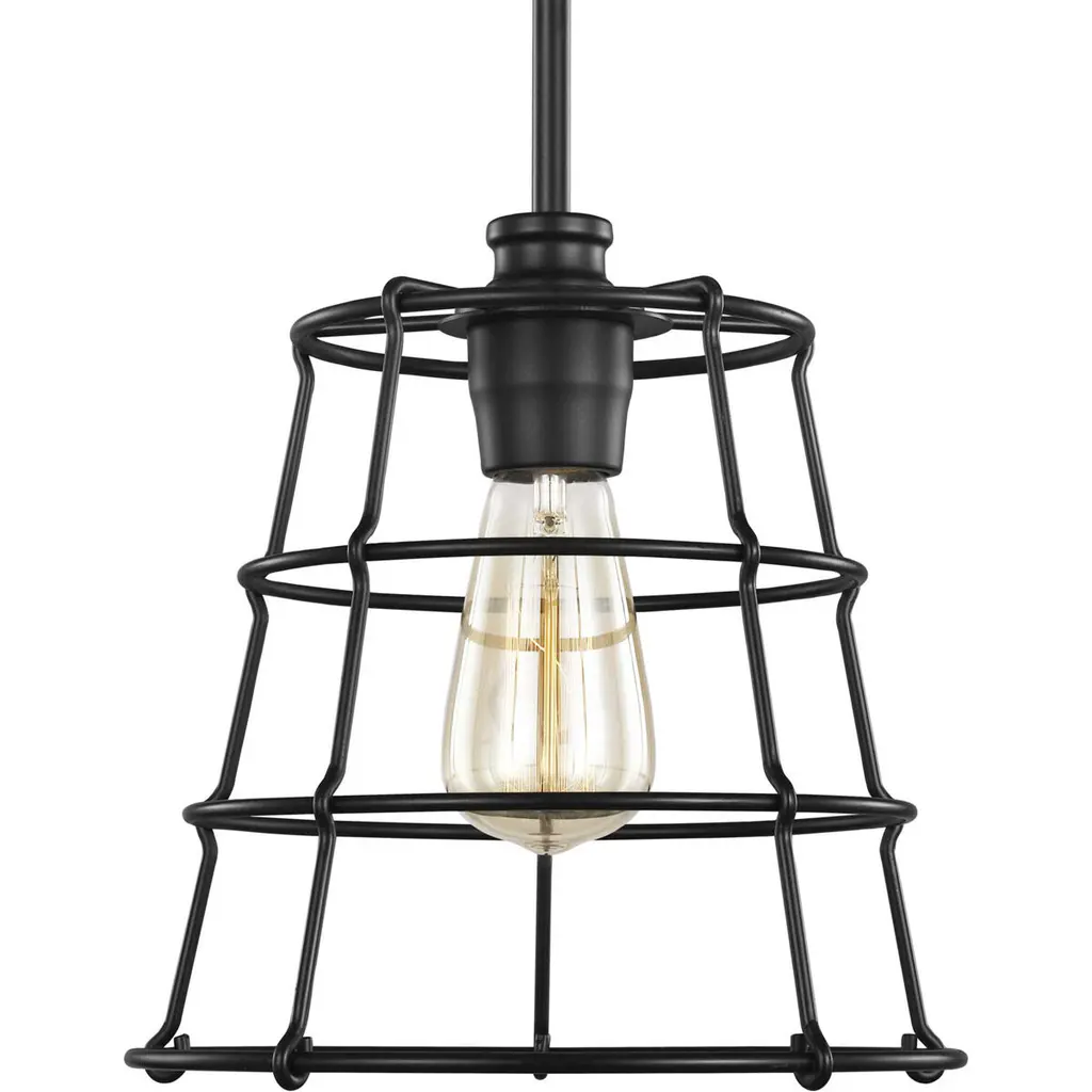 Foster a down-home décor theme with this rustic mini-pendant. A simple egg-basket-inspired wire-frame shade grants the light fixture its signature country-look. Inside the open-cage shade is a vintage light bulb coated in a farmhouse-style black finish.