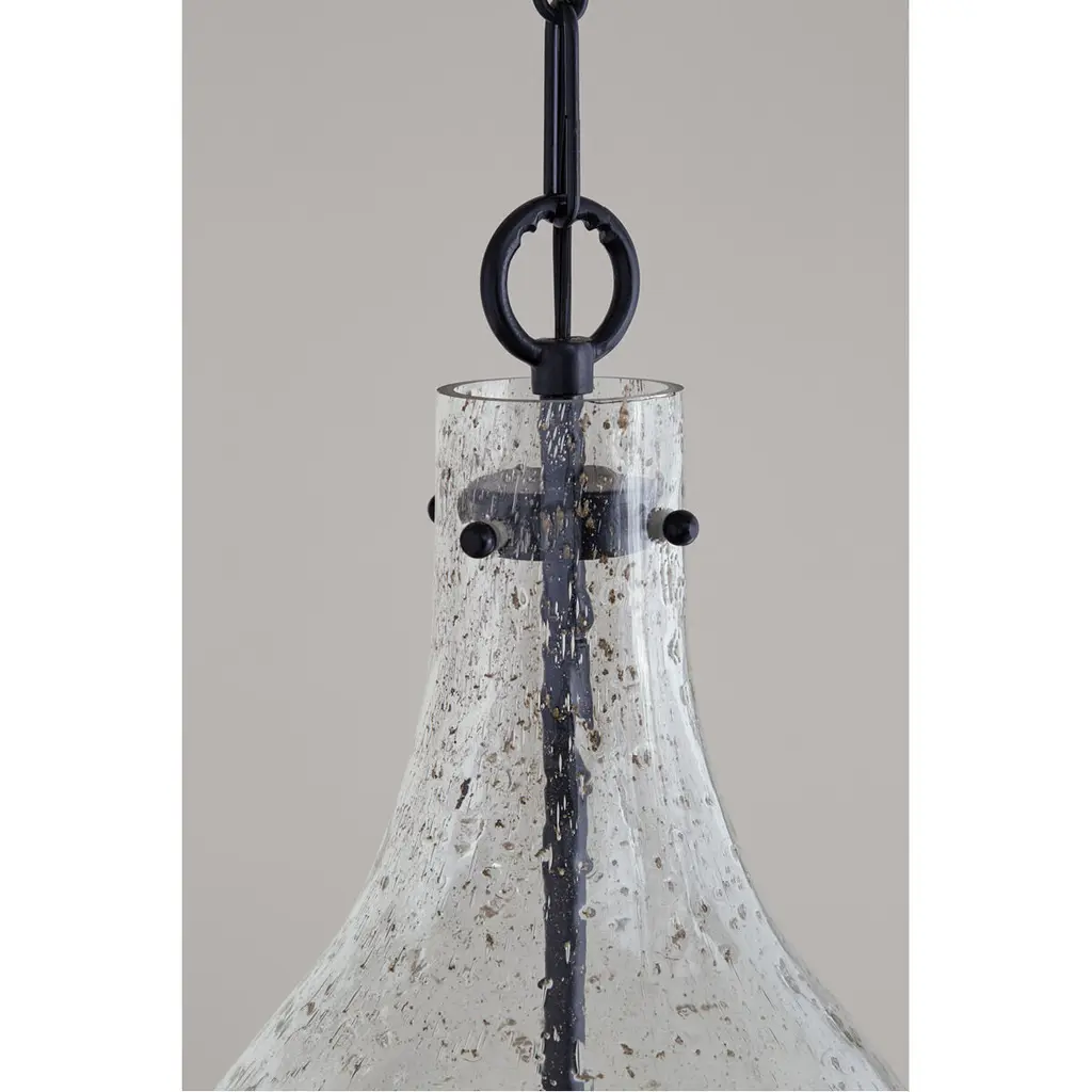 The organic texture and visual grit of Stone Seeded glass is created by a special process of rolling the hot glass over gravel. Combined with a Matte Black finish, these 1-light glass pendants take eclectic style up a few notches.