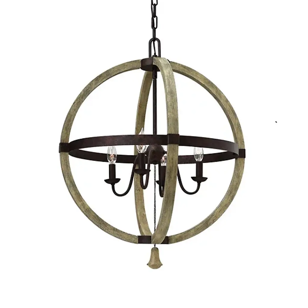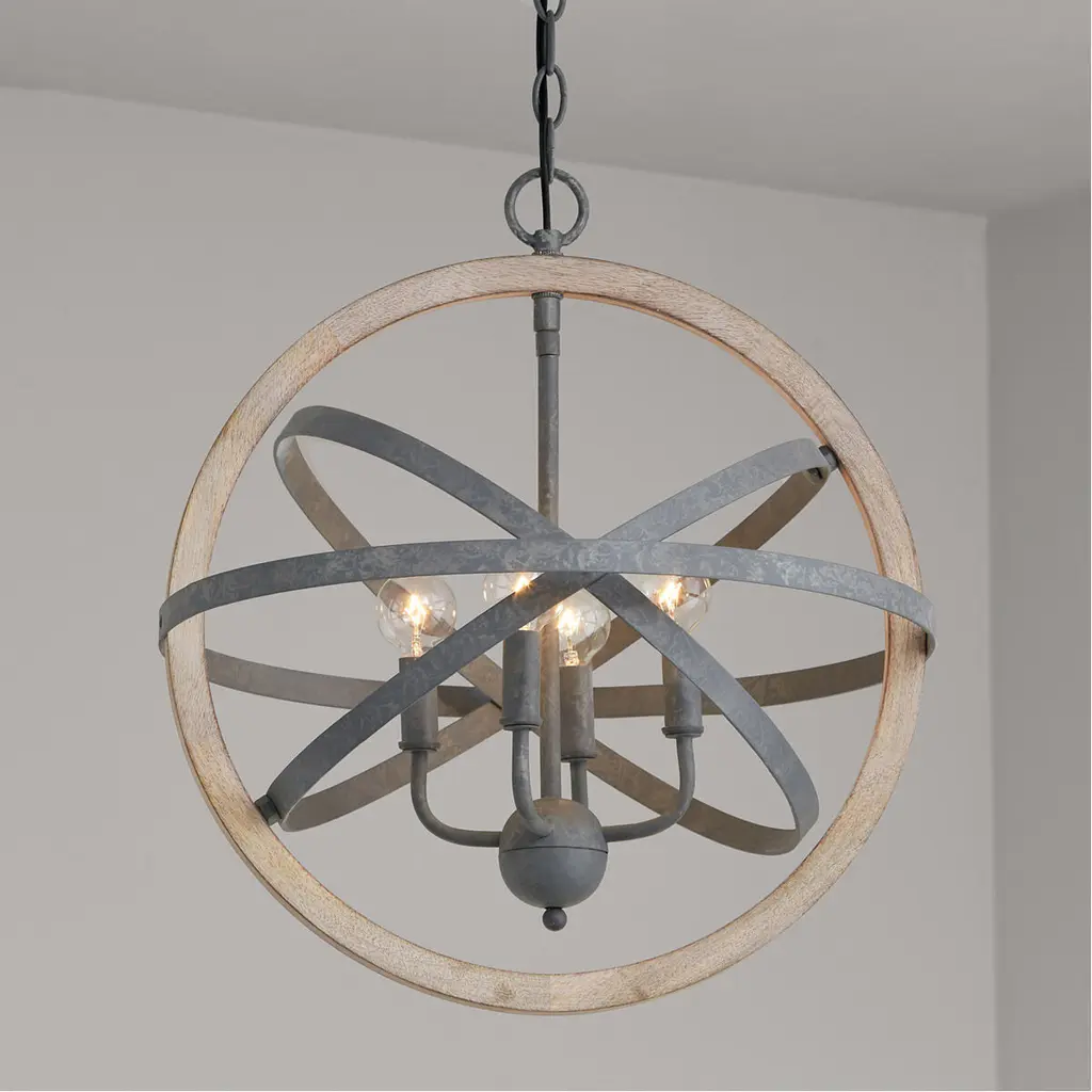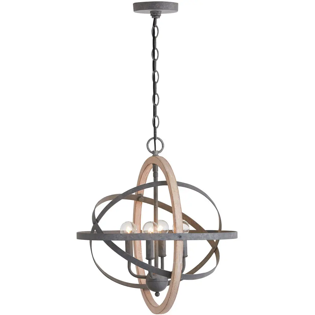 Chandler 4 Light 18 Inch Iron And Wood Pendant Ceiling Light