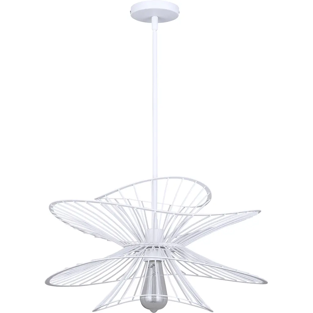 The Channel 1-Light Rod Pendant is a bold, abstract lighting fixture that combines industrial edge with mid-century charm. Its organic shapes and sleek white metal design create a striking visual statement, making it the perfect addition to any modern space. Whether hanging over a kitchen island, dining table, or in a living area, Channel adds an edgy yet refined touch to your decor. Its unique design effortlessly blends raw industrial style with the clean lines of mid-century modern aesthetics. Perfect for those looking to elevate their space with a statement piece that commands attention.