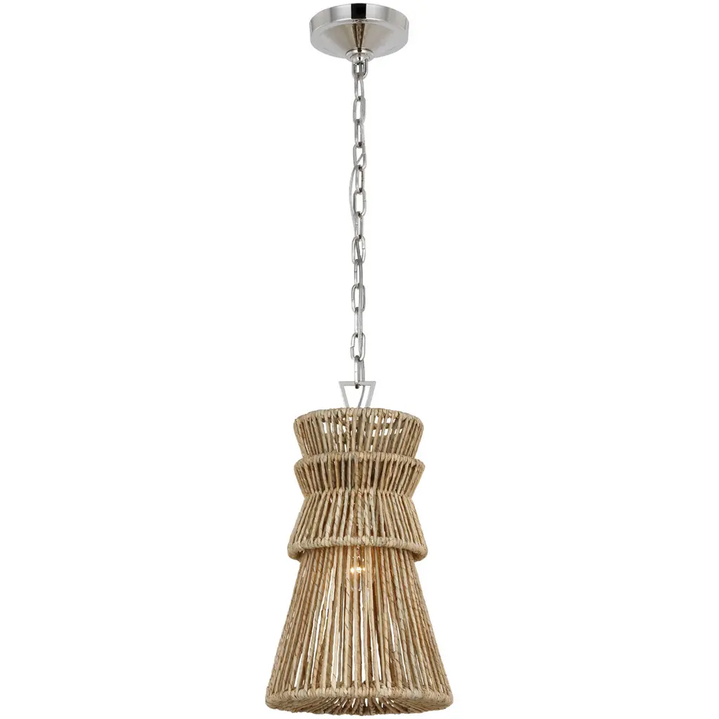 Antigua 10" Pendant in Antique-Burnished Brass and Natural Abaca