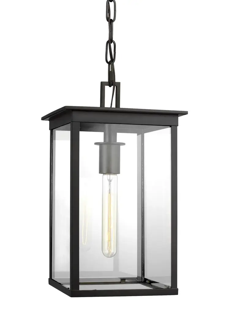 Freeport by Chapman & Myers is crafted of steel and showcases a rectangular and square silhouette with clean-lines. Add a touch of modern-inspired flair to the exterior of your home with this clean-lined outdoor family. Designer: Chapman & Myers Max Height: 79.125 Max Ceiling Slope (in degrees): 45 Canopy: D:5 1/8'' H:1 1/8'' Round Shade/Glass: clear glass panels Lamping: 1 T10 Medium 60 watt light bulb Voltage: 120 Bulb Included: No Safety Rating Location: damp Max Chain Length (in.): 60
