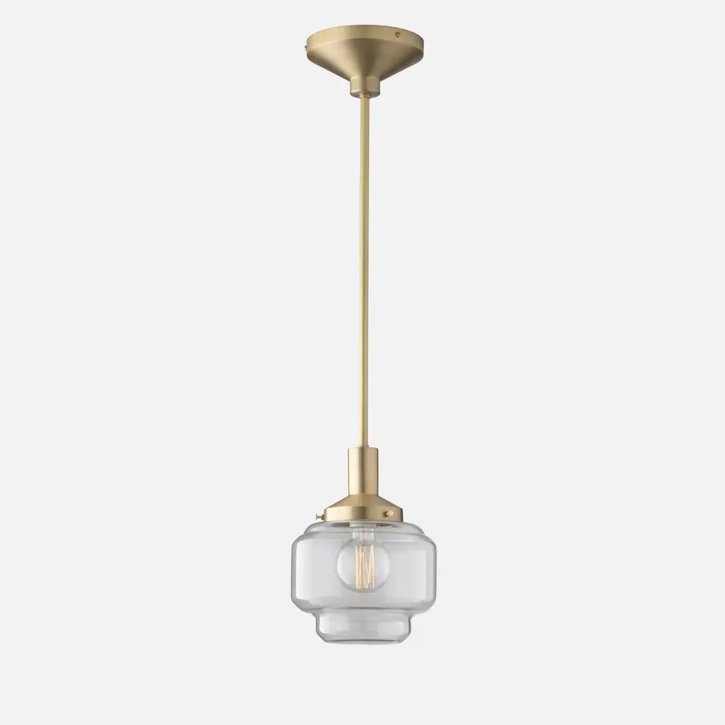 Garrett from Chapman & Myers features cylindrical Clear Extruded Glass shades paired with rich Burnished Brass or contemporary Polished Nickel detailing and linen shades on the lamps. This striking blend of metal and glass, sophisticated in its simplicity, is both industrial and glamorous. It is sure to inspire a higher level of style wherever it is placed. A modern re-interpretation of industrial lighting typically used in machine-age factories. Features