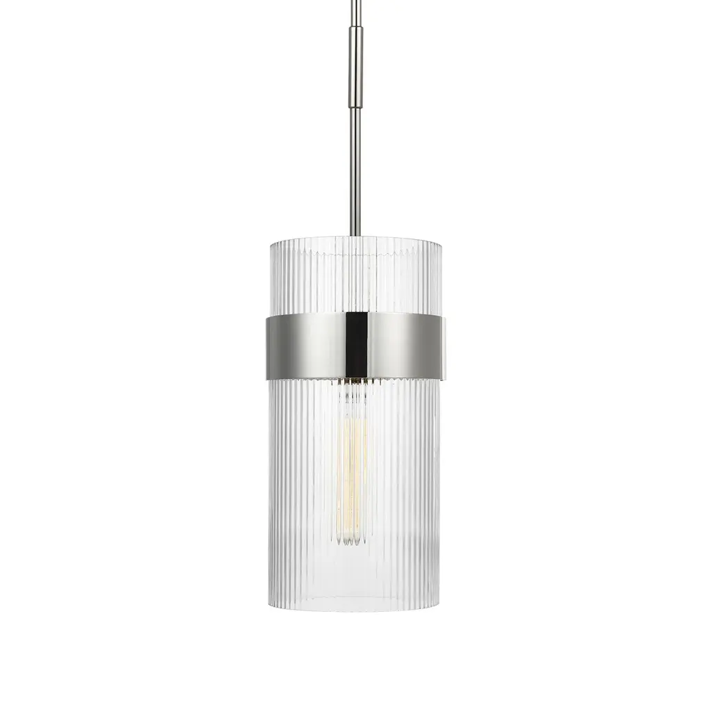 In the Chapman and Myers Geneva one light indoor pendant, a fluted shade forms an elegant, dynamic silhouette that's balanced by a strong frame of Burnished Brass or Polished Nickel. Features