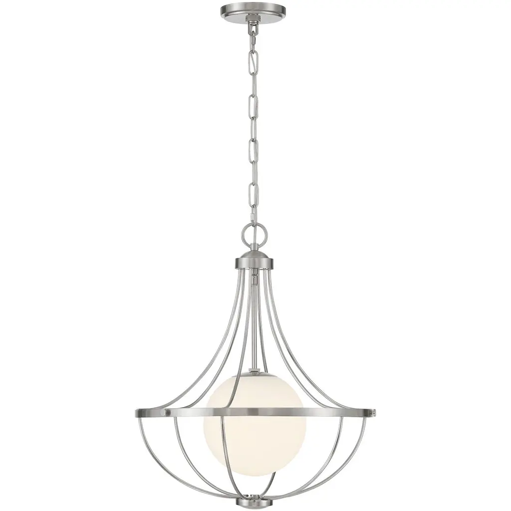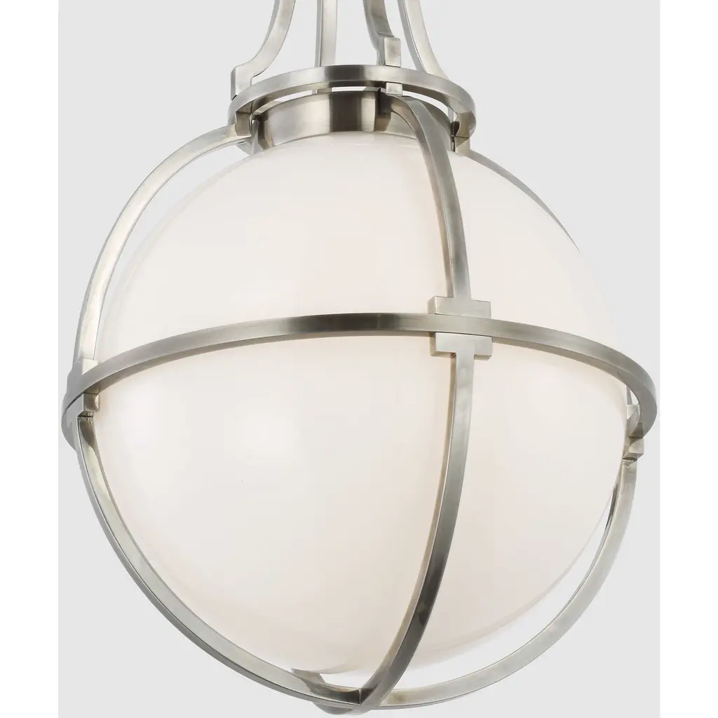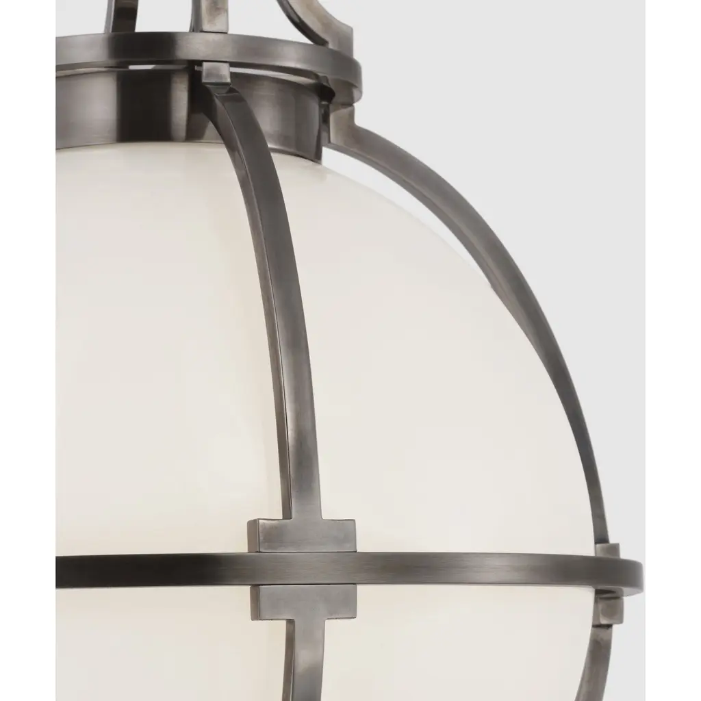 Gracie Medium Captured Globe Pendant in Antique Nickel with White Glass