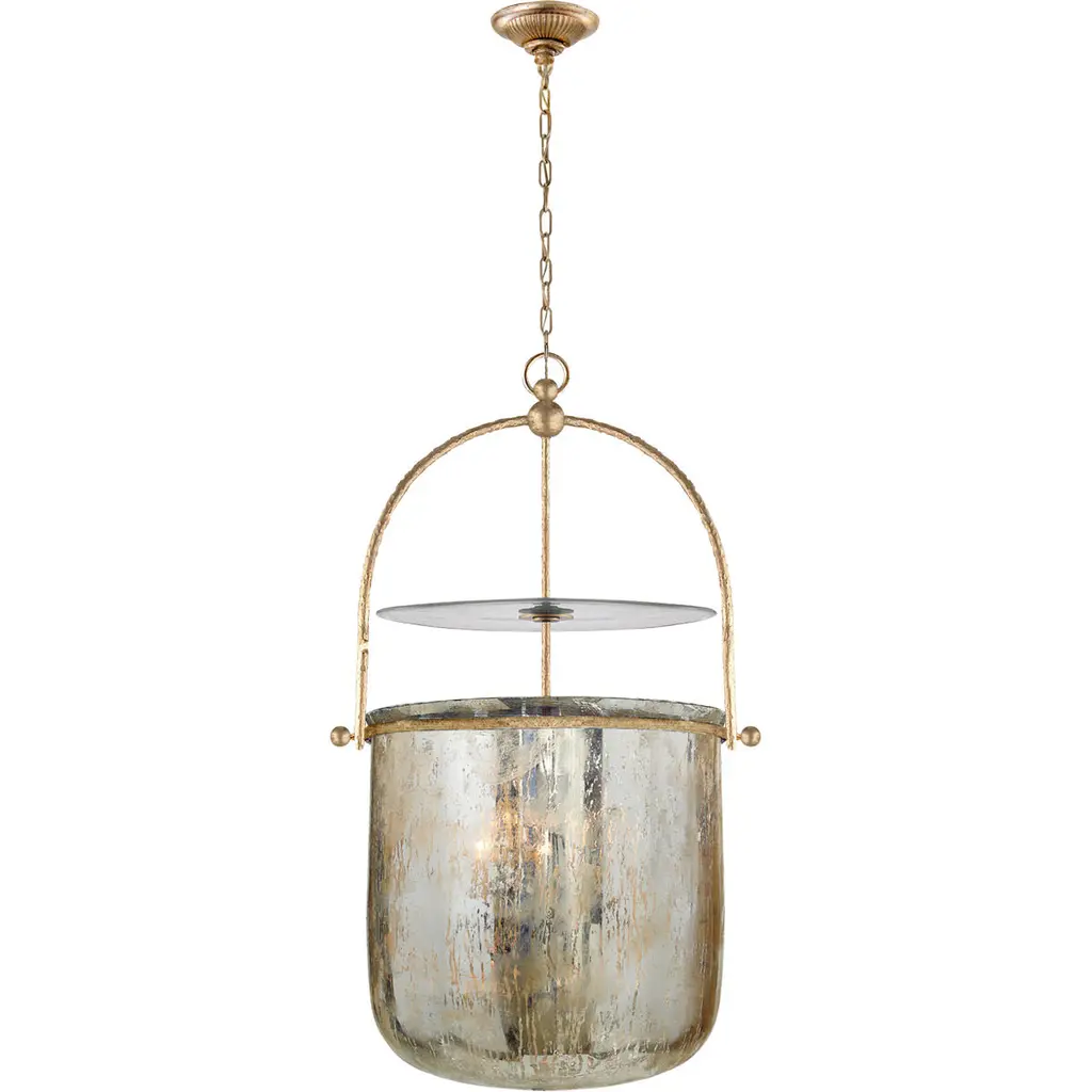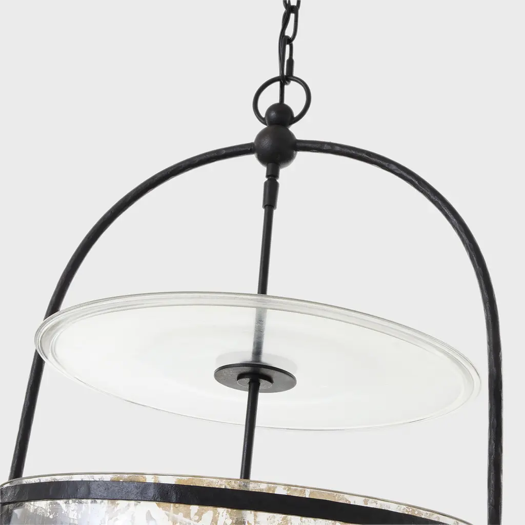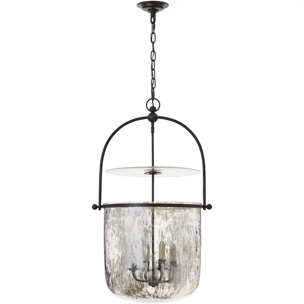 Chapman & Myers Lorford 4 Light 20 Inch Aged Iron Bell Lantern Pendant Ceiling Light In Mercury Glass