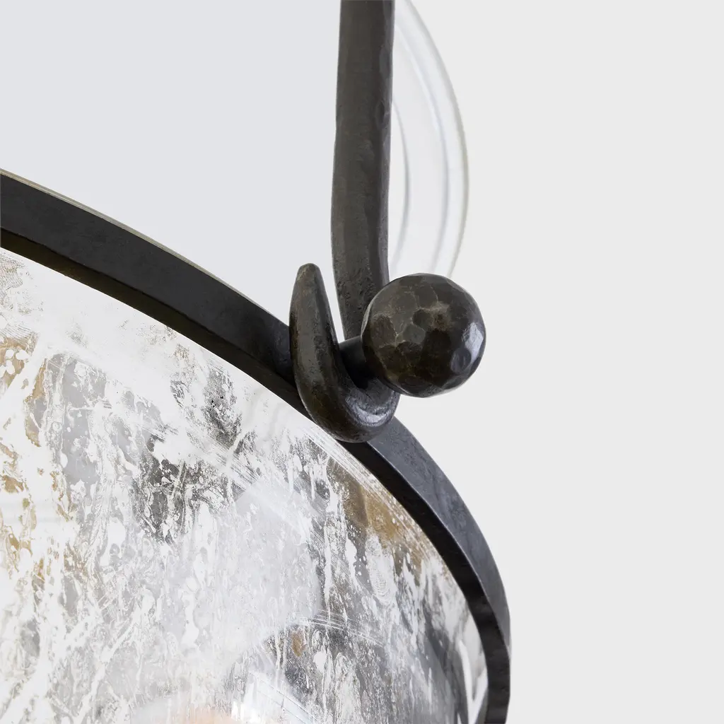 Lorford Smoke Bell Lantern in Aged Iron with Mercury Glass
