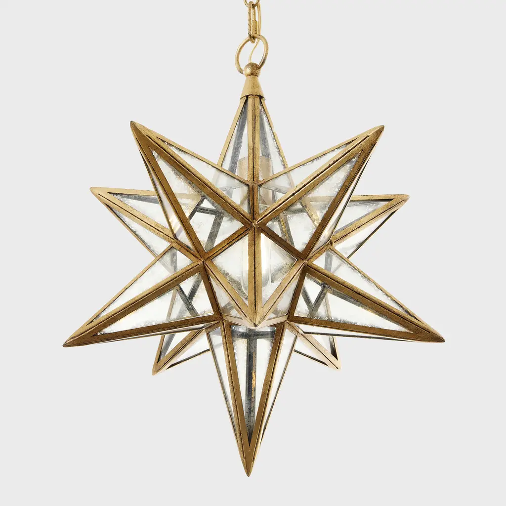 Moravian Medium Star Lantern in Gilded Iron with Antique Mirror