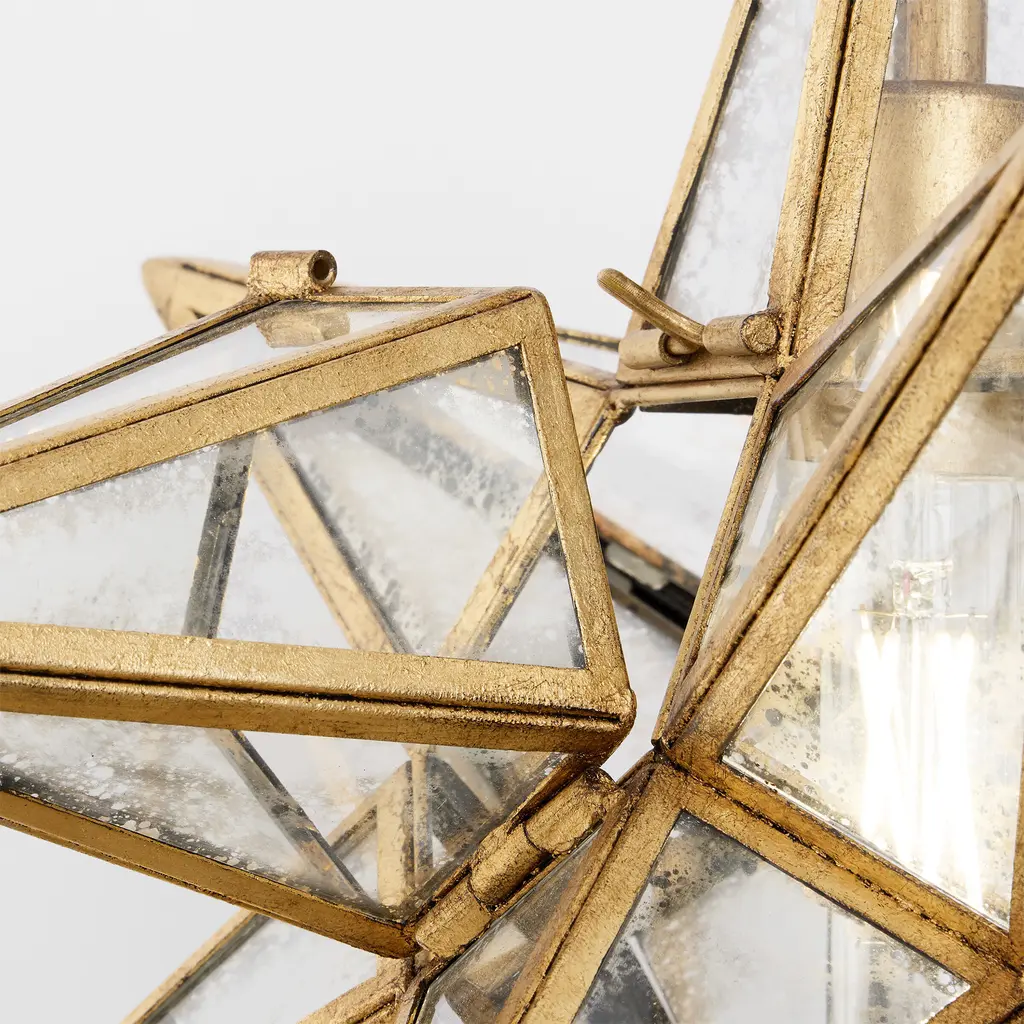 Moravian Medium Star Lantern in Gilded Iron with Antique Mirror