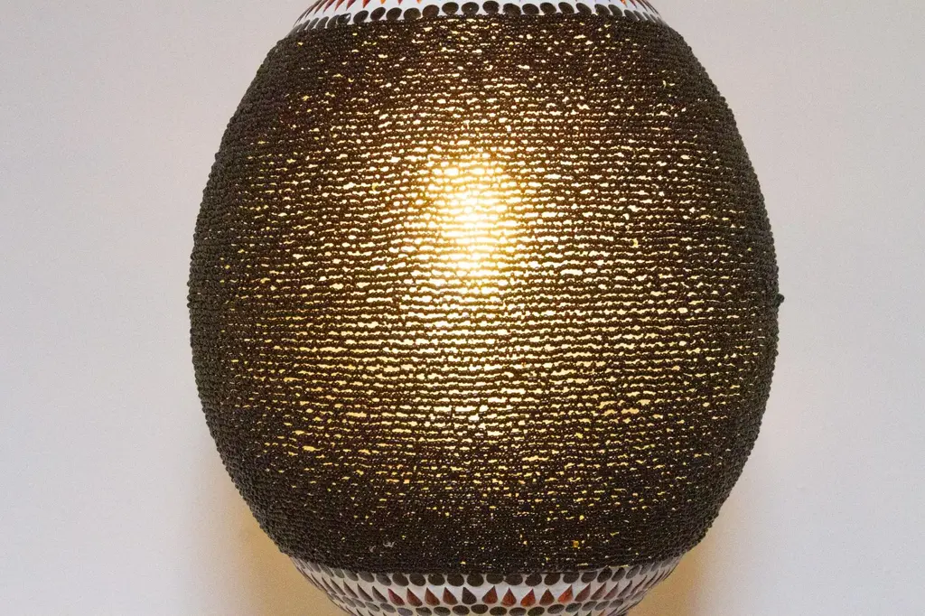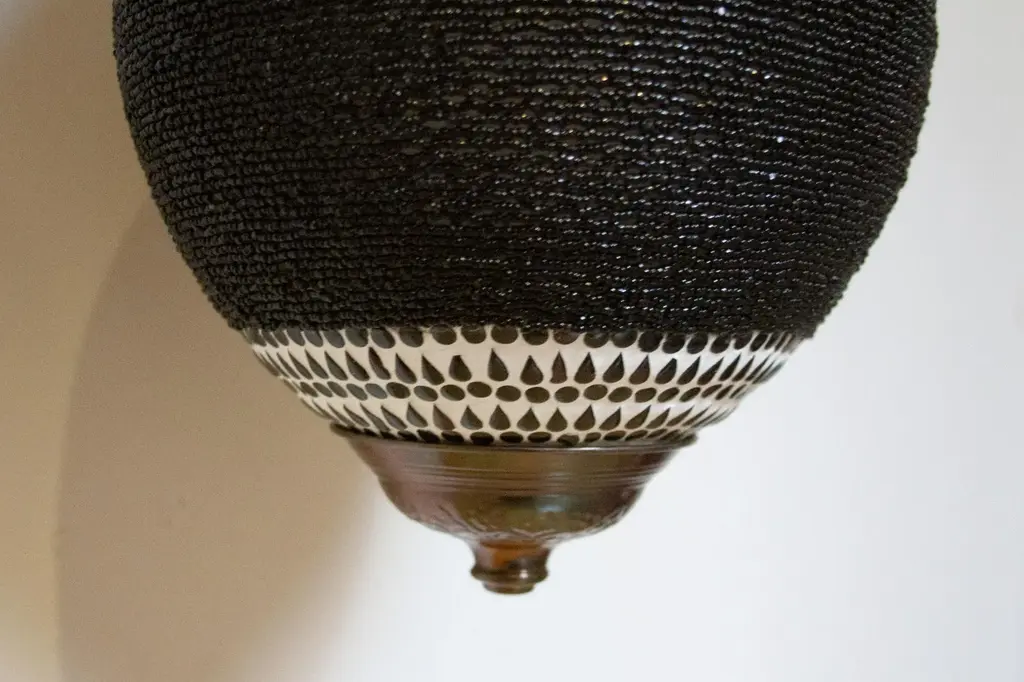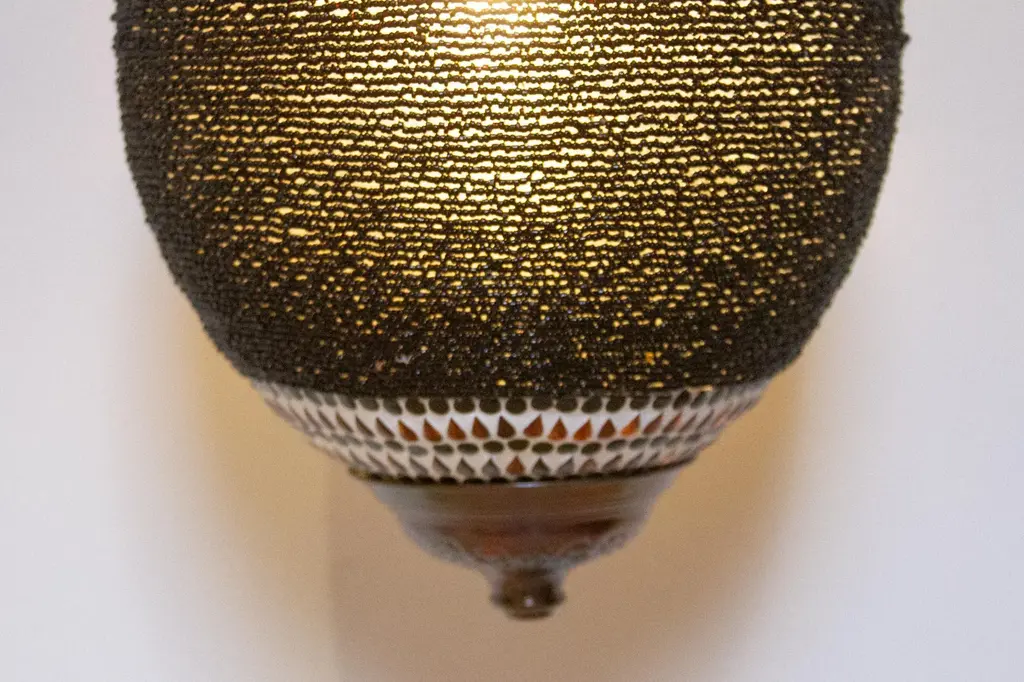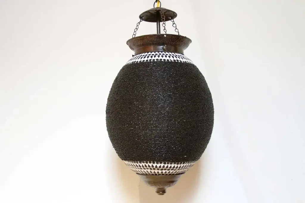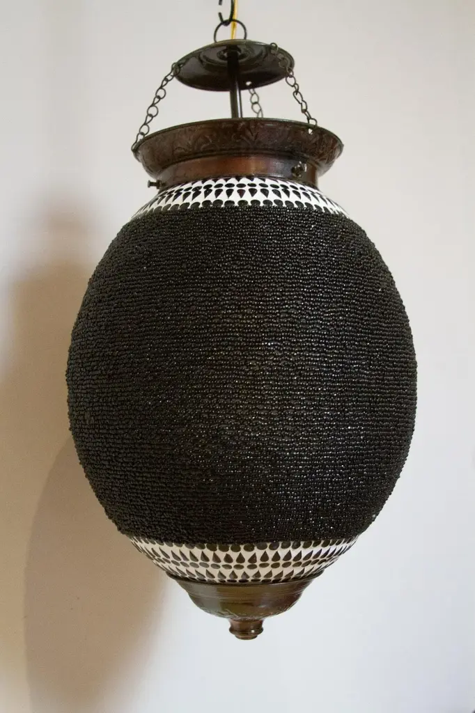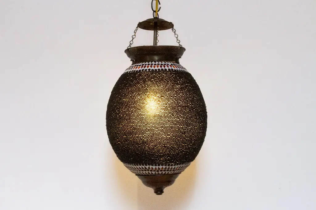 Lively and colorful, these hand-crafted lanterns are made with small beads and hand-cut pieces of hued glass in geometric patterns. **Please bear in mind that colors of products shown may vary slightly from their original color due to monitor display settings or photography studio lighting.