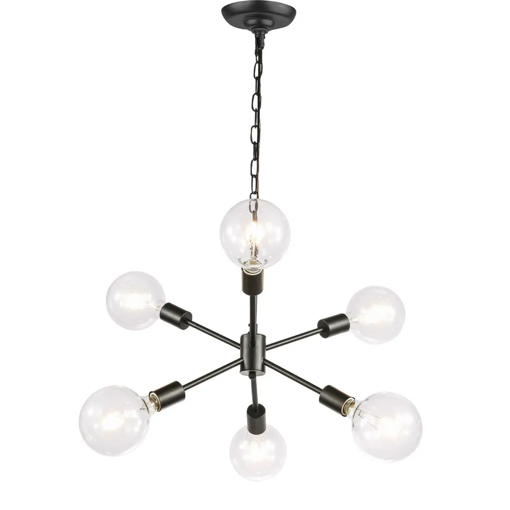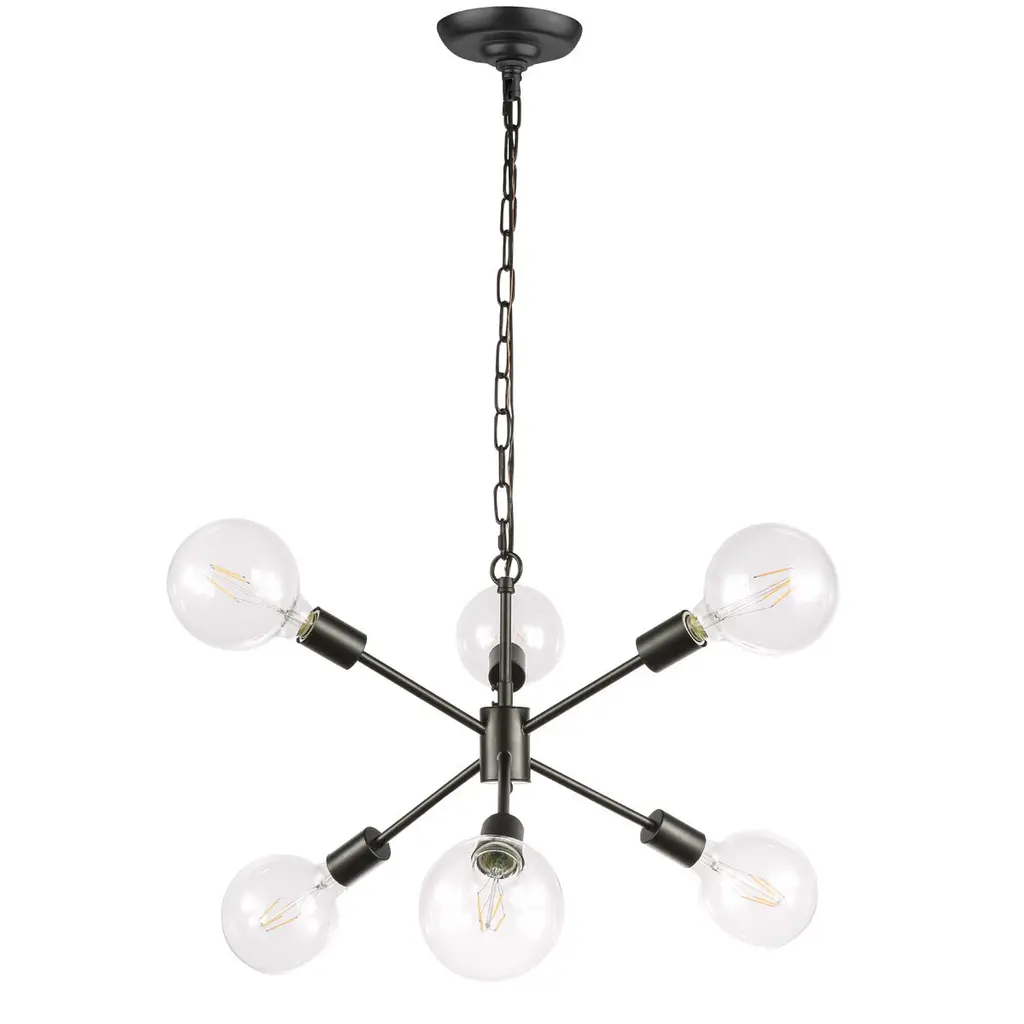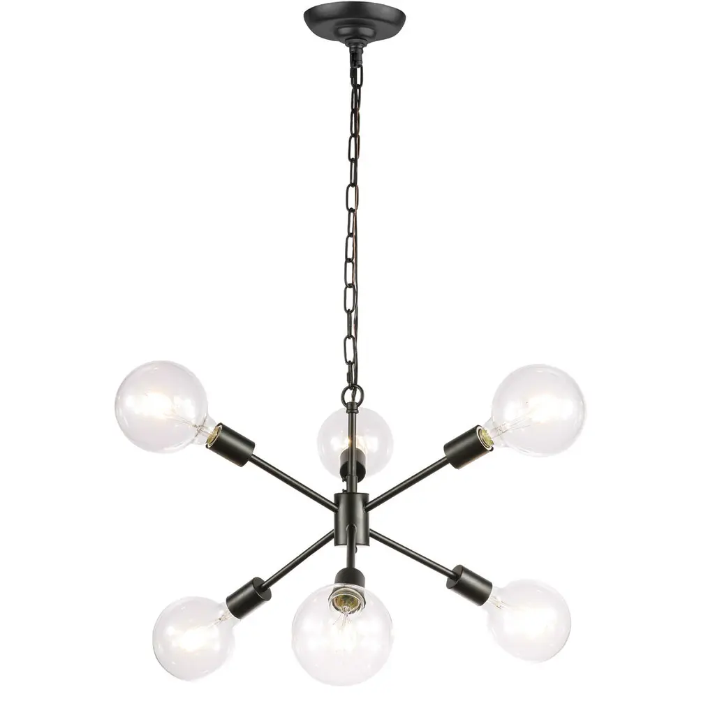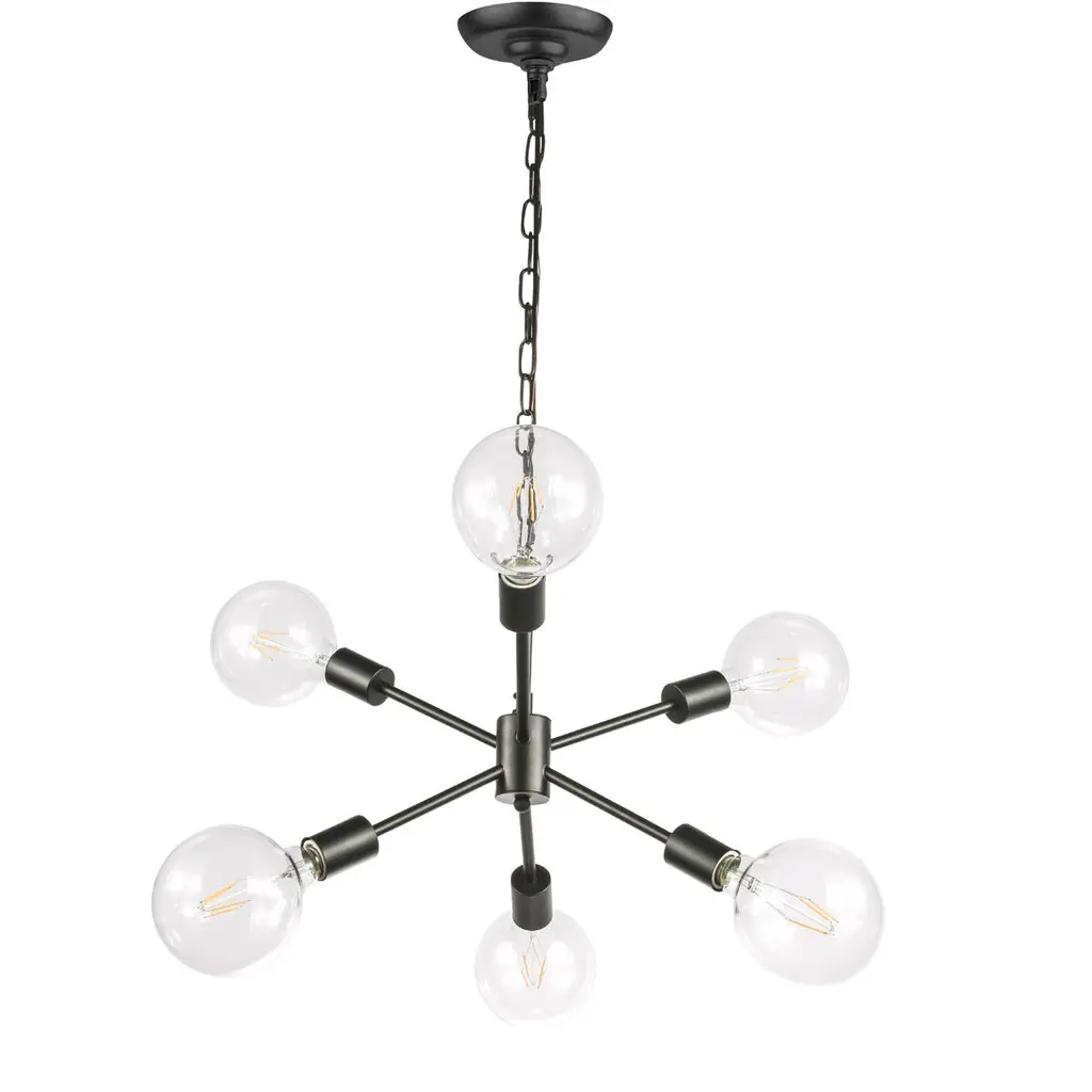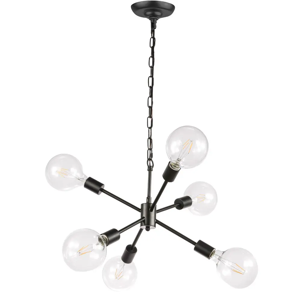 The Charleston collection pendant lamp illuminates in all directions, creating a wonderful display of artistic style and brilliance. If your home was a modern art exhibit, then you have curated the best possible piece of art-also known as the Charleston pendant lamp. With six lights pointing in different directions, and the black or brass finish gleaming in modern beauty, you won't have to worry about being "up to date" because you already are (light bulbs not included).