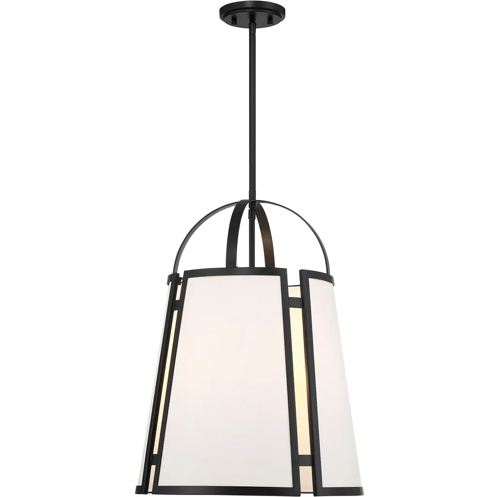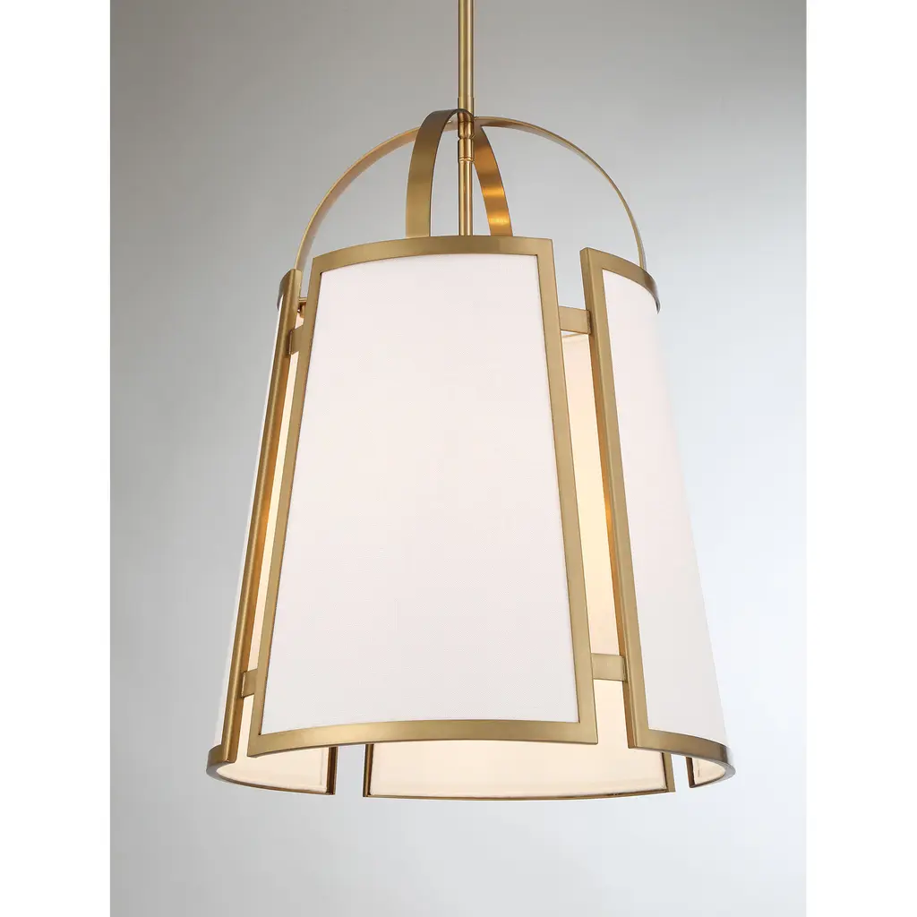 Add a prim and polished look to your home with the Savoy House Chartwell 4-light pendant. The uniquely intriguing shade flaunts cutaway detailing and panes with white linen fabric. Two flat, slim bands help to connect the shade to the downrod. Warm Brass finish. Chartwell is 16.75" in width and has an adjustable height ranging from 22.5" to 76.5". Comes with four 12" downrods and one 6" downrod. Uses four candelabra size bulbs of up to 60 watts per bulb. Bulbs not included.
