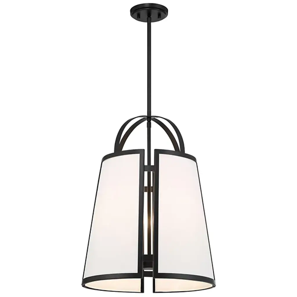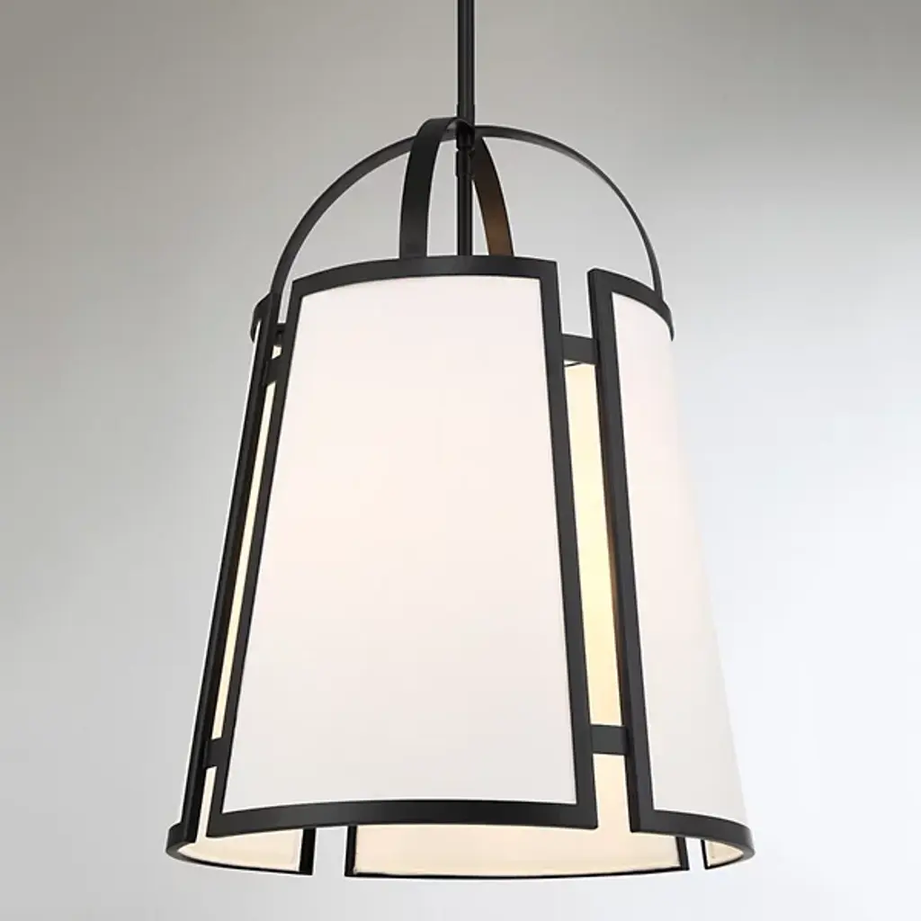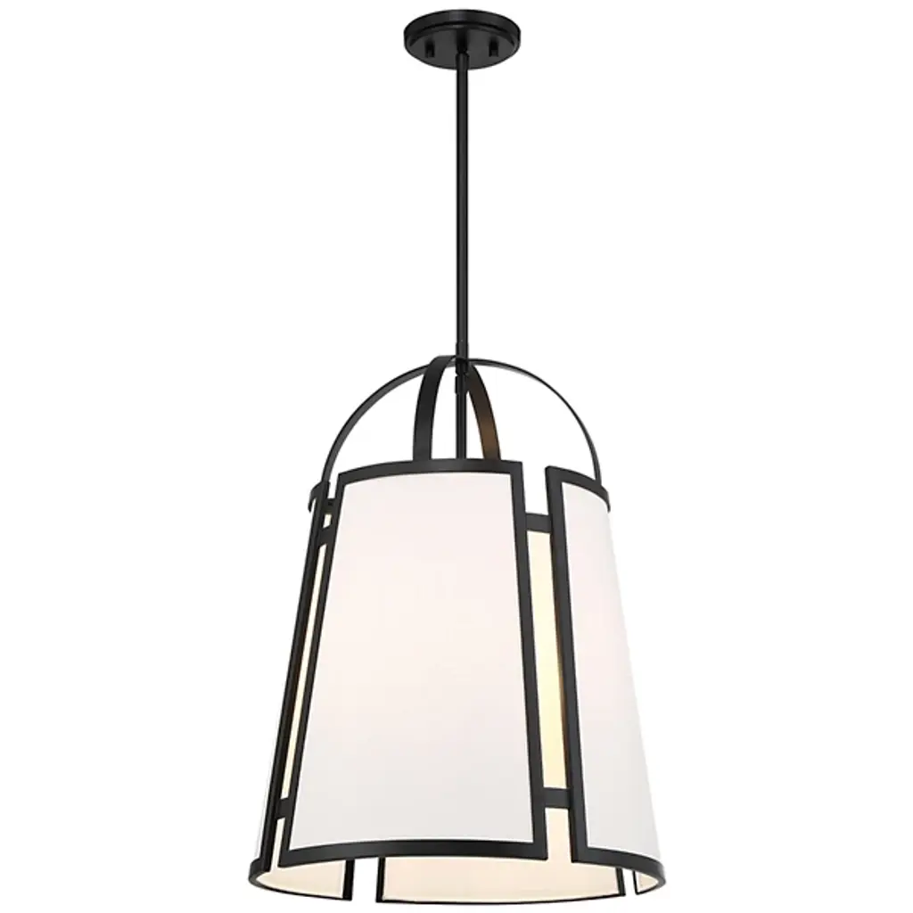 The Chartwell Pendant from Savoy House offers a distinct and captivating design, showcasing a shade with intricate cutaway detailing and white linen fabric panes that lend a touch of sophistication. Two flat, slim bands that elegantly connect the shade to the downrod enhance the sleek aesthetic. Finished in a refined Matte Black, this pendant light seamlessly blends style and functionality, making it a perfect and exquisite addition to any interior décor.