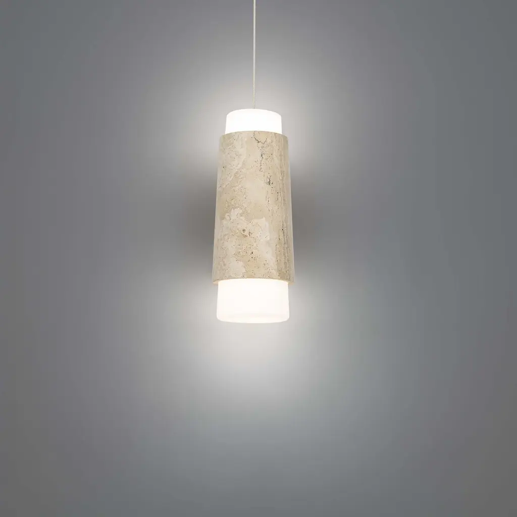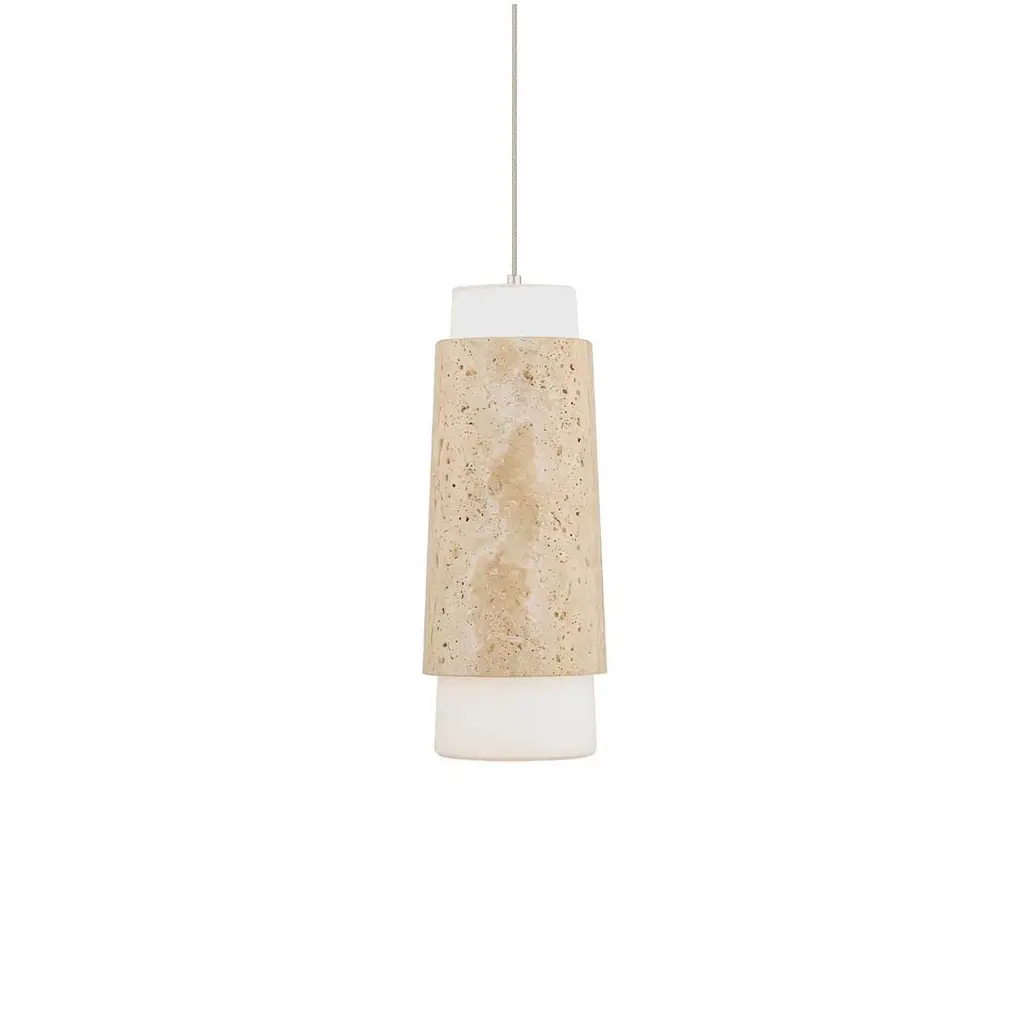 With a touch of modern organic flair, the Chauncey LED Pendant Light from Modern Forms is a study in contrasting materials. This elegant pendant features an etched opal glass cone, beautifully encircled by a textured, natural stone band. The unique design offers bi-directional light, with color-temperature-selectable LEDs casting a soft glow from both the top and bottom. The natural variations in the stone's veining make each piece a one-of-a-kind, sophisticated and elemental centerpiece for your home. Highlights:
