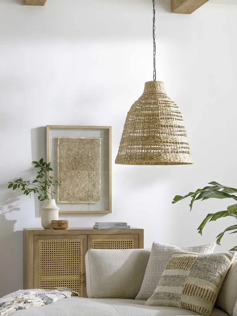 Collection: Chermignac Colors: Tan Material: Fixture: Rattan Styles: Southwestern Made In: China Shade Color: BrownBrown Hanging Method: Chain Cord Length: 6' Switch Type: On/Off Number of Bulbs: 1 Socket Type: E-26 Bulb Wattage: 100W