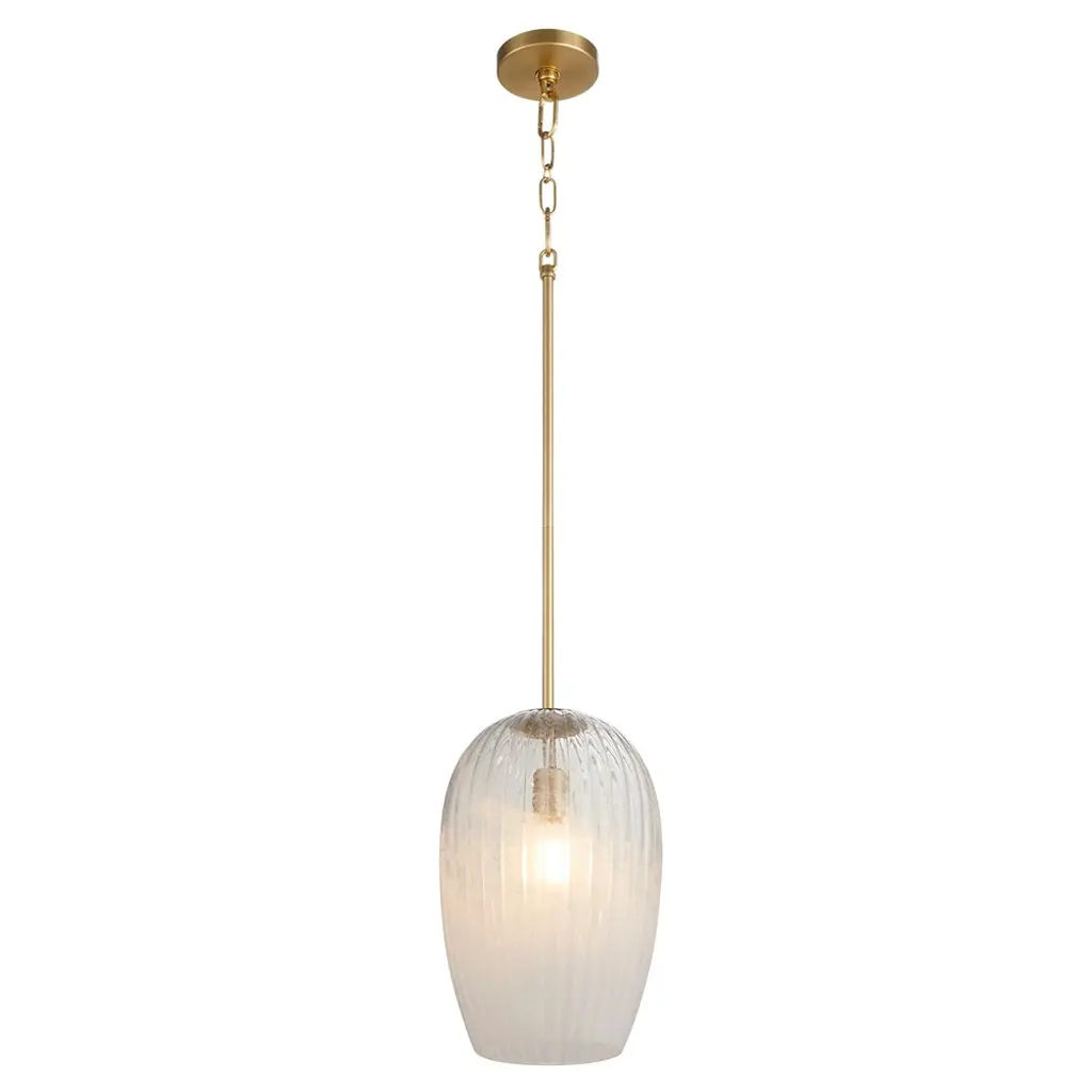 Cheryl Modern White Fluted Glass Aged Brass Single Pendant - Small