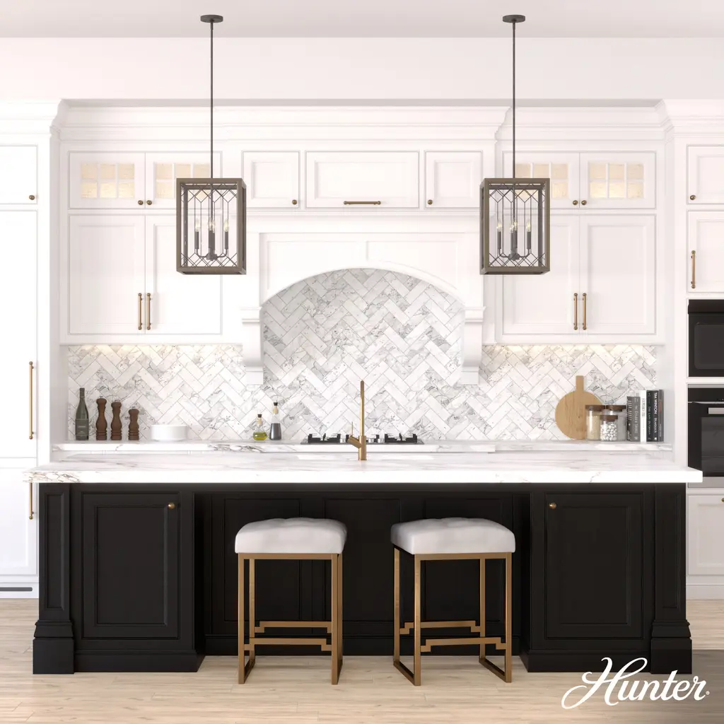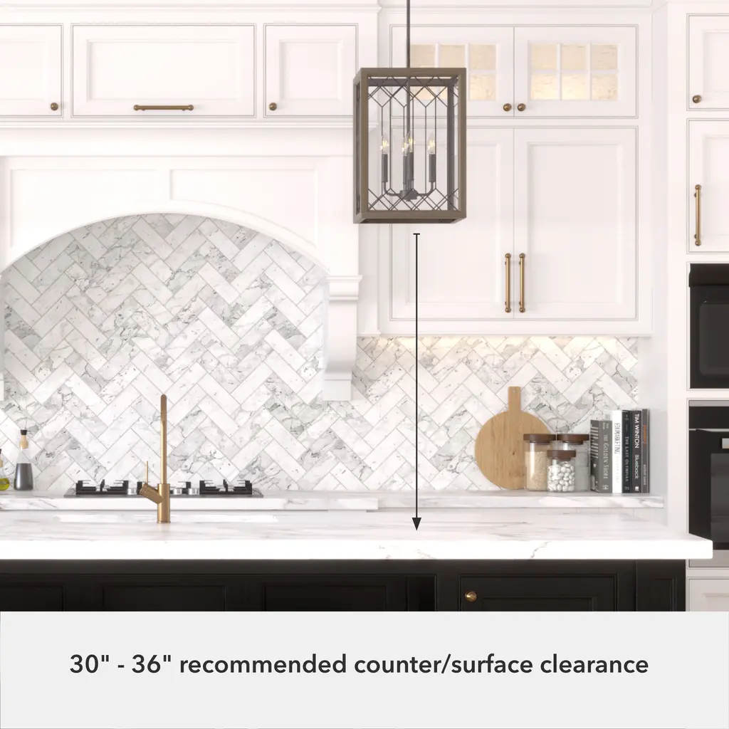 Create a cozy atmosphere with the Chevron 4 light lantern. The craftsman style of this fixture features metal and glass with a lattice design that gives a cottage feel. The geometric lines and make this a conversation piece to hang in your entryway or kitchen to update your casual traditional style. The Chevron collection is a charming addition to your space.