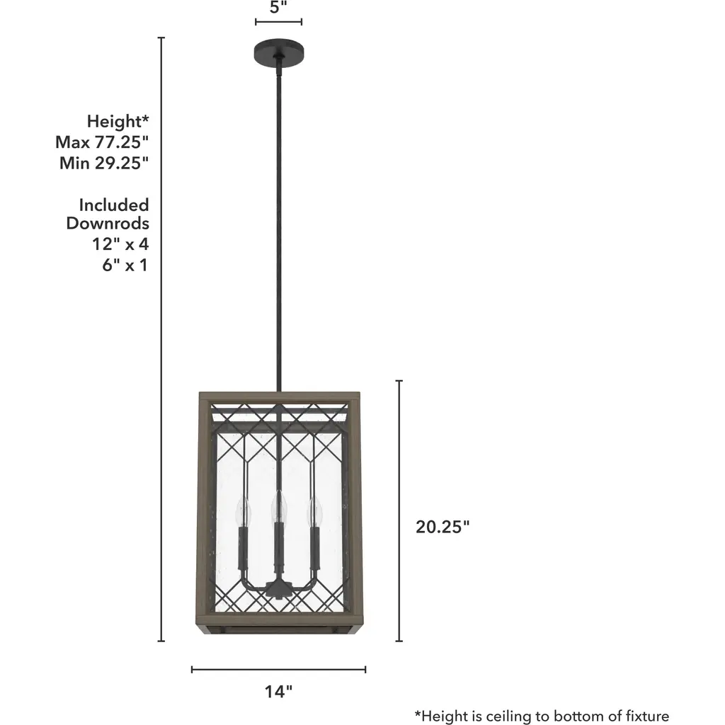 Chevron 4 Light 14 Inch Rustic Iron And French Oak Lantern Pendant Ceiling Light, Small