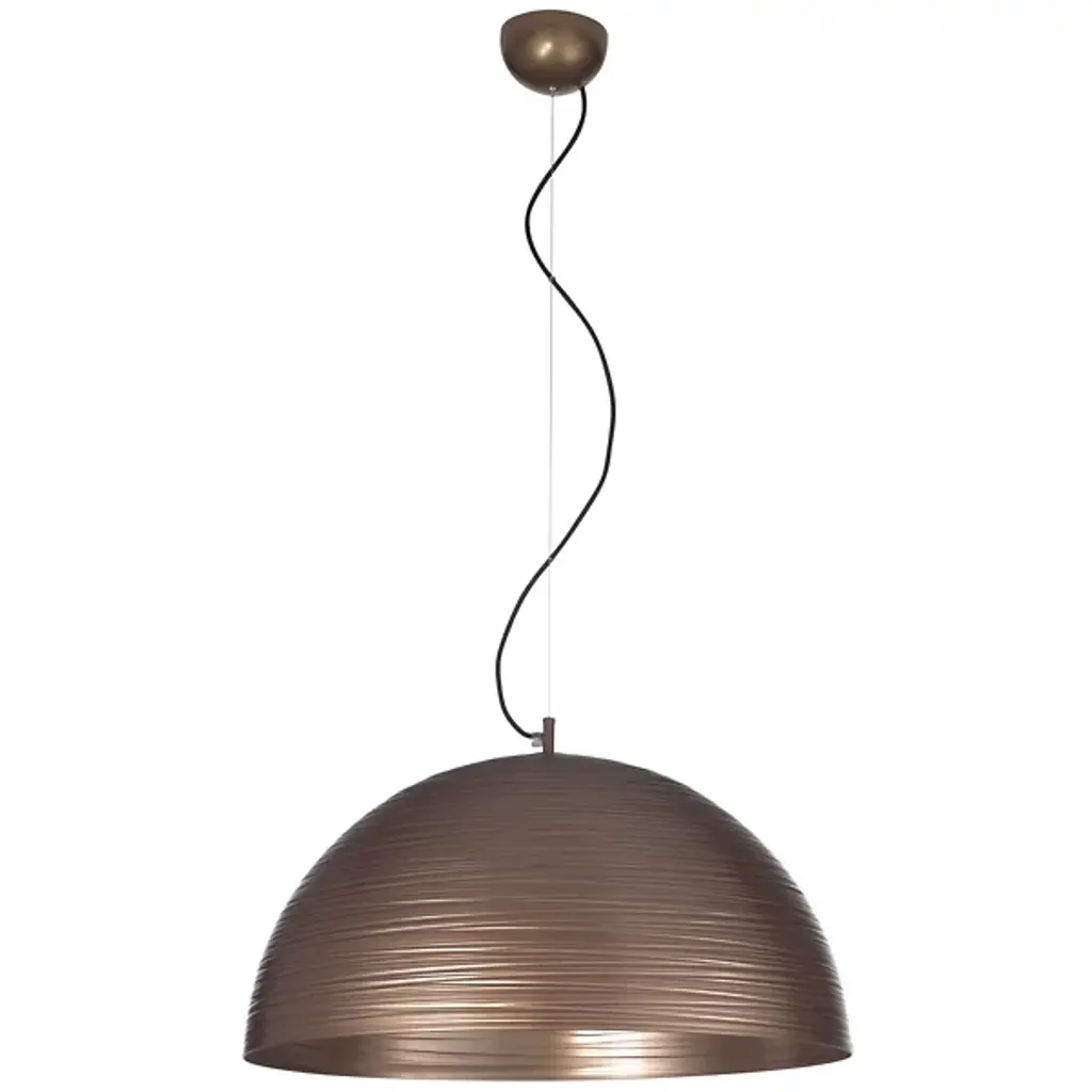 Quiet yet elaborate. The Chiara Pendant from Metal Lux welcomes one with a familiar dome shape and keeps the eyes intrigued with artful striations. Designer Studio Tecnico Metallux rethinks classic lighting forms with a contemporary aesthetic. Here, the studio celebrates the time-tested hemisphere shade. Hanging with fine wire, the metal dome shade contrasts its smooth curves with a linear surface texture. A touch of light hitting the linear pattern accentuates their lively character. Hidden inside for reduced glare, bright bulbs send a soft down glow traveling through the wide opening of the dome.