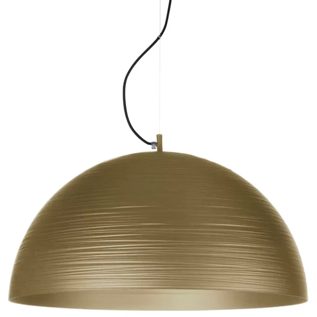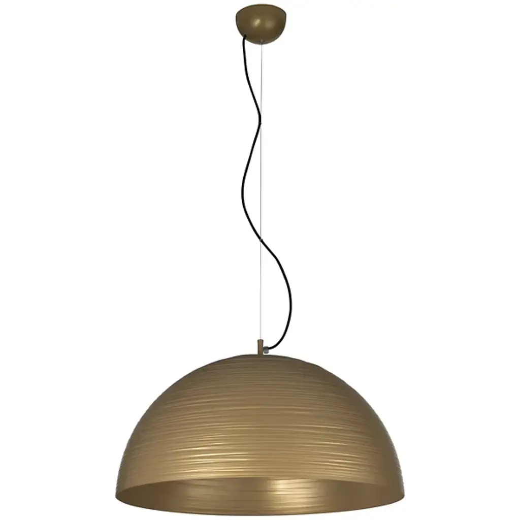 Quiet yet elaborate. The Chiara Pendant from Metal Lux welcomes one with a familiar dome shape and keeps the eyes intrigued with artful striations. Designer Studio Tecnico Metallux rethinks classic lighting forms with a contemporary aesthetic. Here, the studio celebrates the time-tested hemisphere shade. Hanging with fine wire, the metal dome shade contrasts its smooth curves with a linear surface texture. A touch of light hitting the linear pattern accentuates their lively character. Hidden inside for reduced glare, bright bulbs send a soft down glow traveling through the wide opening of the dome.