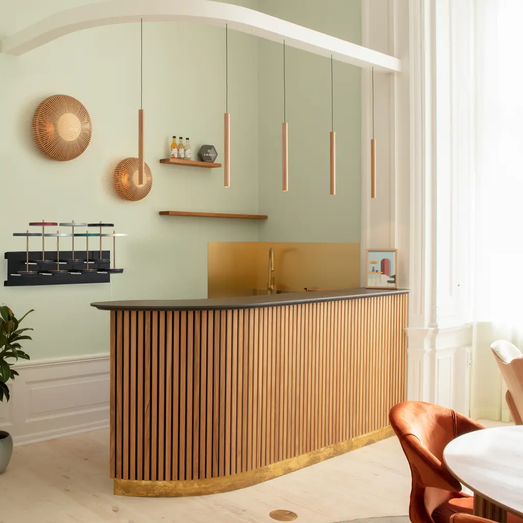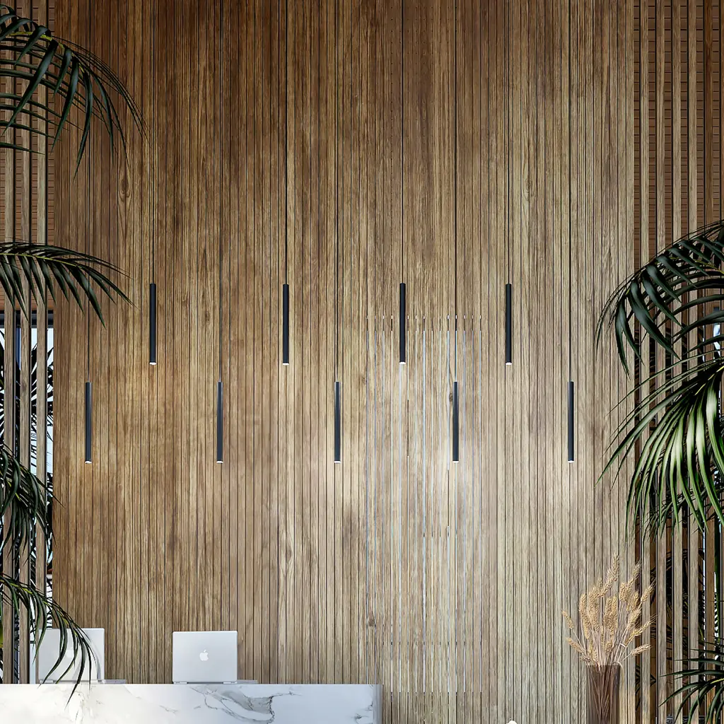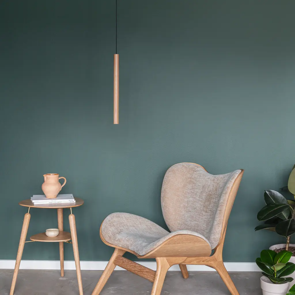 The Chimes Tall Pendant Lamp is a simple lighting piece made from solid oak, inspired by the vertical lines of trees in a dense forest. Its elongated cylindrical shape houses a warm LED light source, delivering focused lighting perfect for kitchen counters or reading corners. Reflecting Nordic design traditions, multiple Chimes Tall lamps can be arranged in rows or clusters to create a warm and inviting ambiance. Available in 3 different oak finishes, it suits various interior settings.