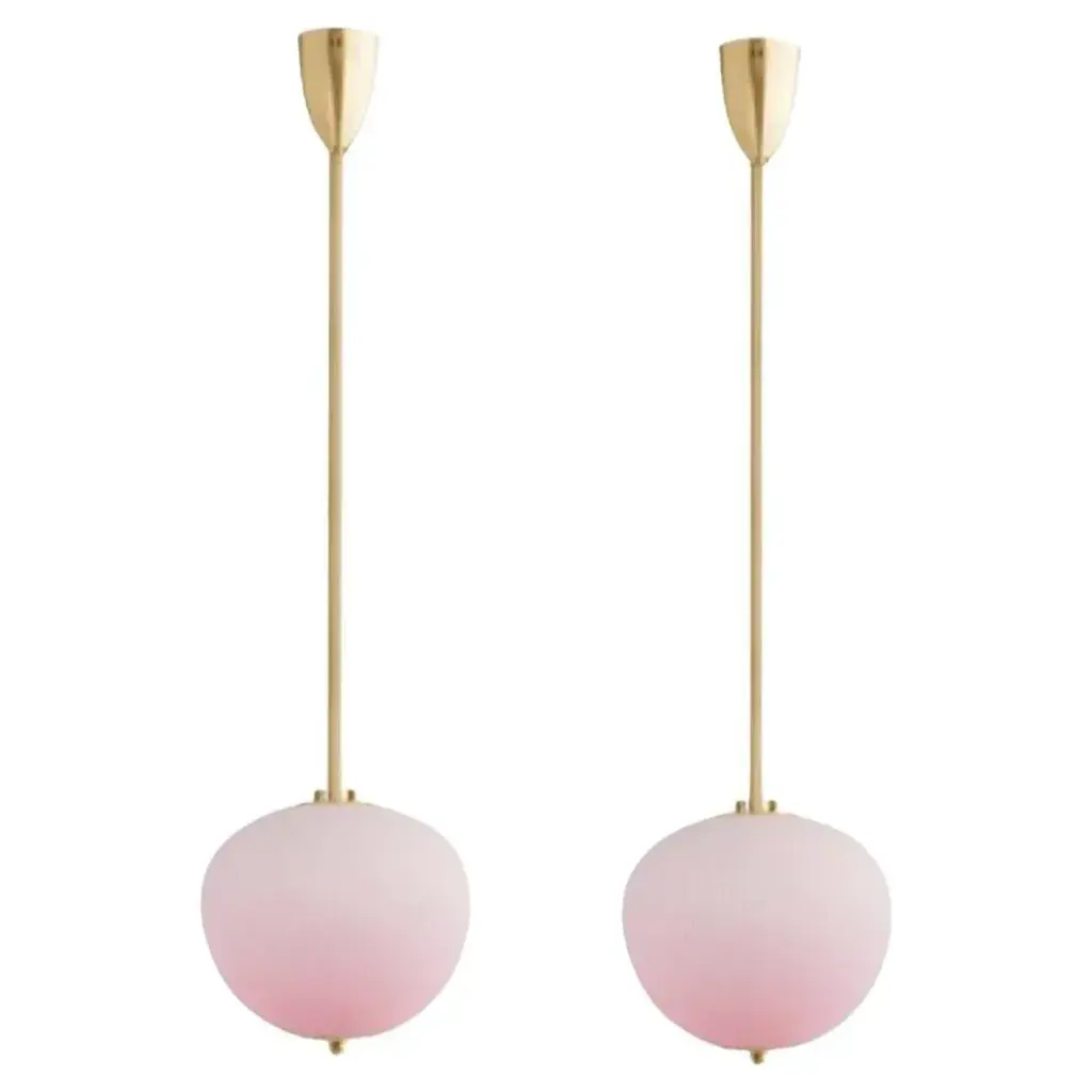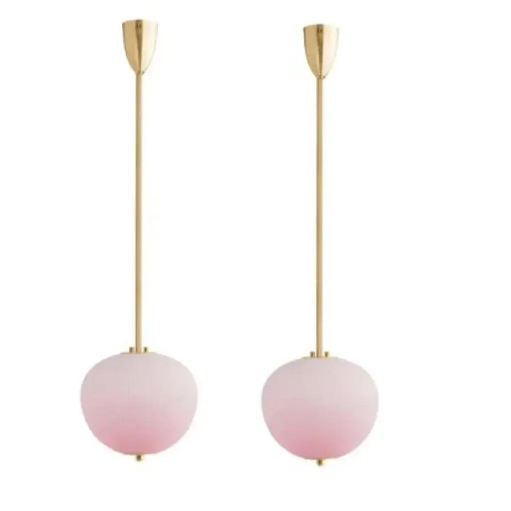 Pendant china 03 by magic circus editions dimensions: h 90 x w 26.2 x d 26.2 cm, also available in h 110, 130, 150, 175, 190 materials: brass, mouth blown glass sculpted with a diamond saw colour: soft rose available finishes: brass, nickel available colours: enamel soft white, soft rose, jade green, mustard yellow, rich grey, opal grey up to 250v (europe/uk standard).