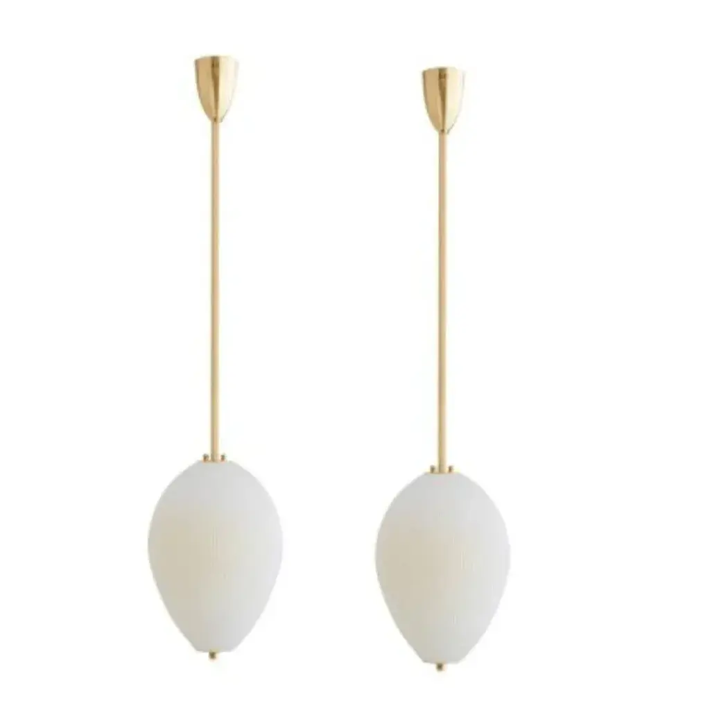 Pendant china 10 by magic circus editions dimensions: h 90 x w 32 x d 32 cm, may be available separately in h 110, 130, 150, 175, 190 cm materials: brass, mouth blown glass sculpted with a diamond saw color: ivory available finishes: brass, nickel available colours: enamel soft white, soft rose, jade green, mustard yellow, rich grey, opal grey; for the tubes: black, red brick all our lamps can be wired according to each country. If sold to the usa it will be wired for the usa for instance. up to 250v (europe/uk standard).