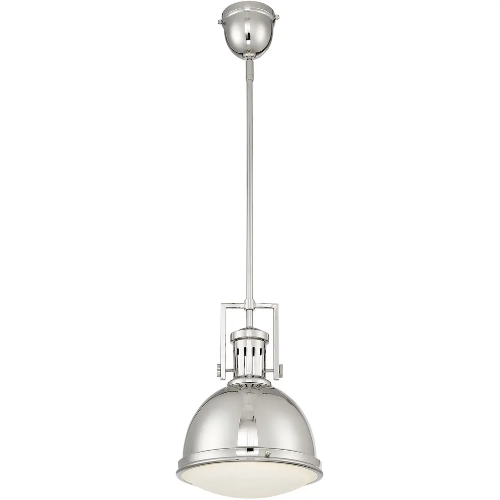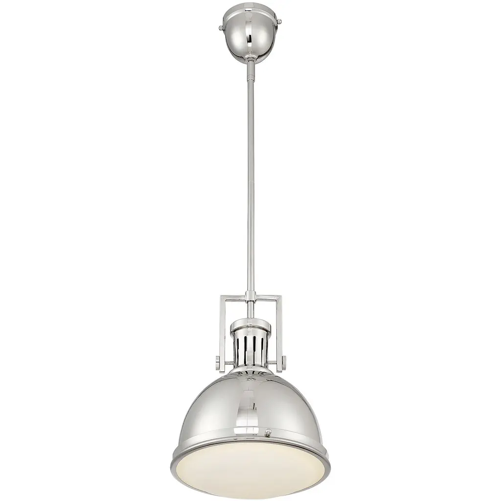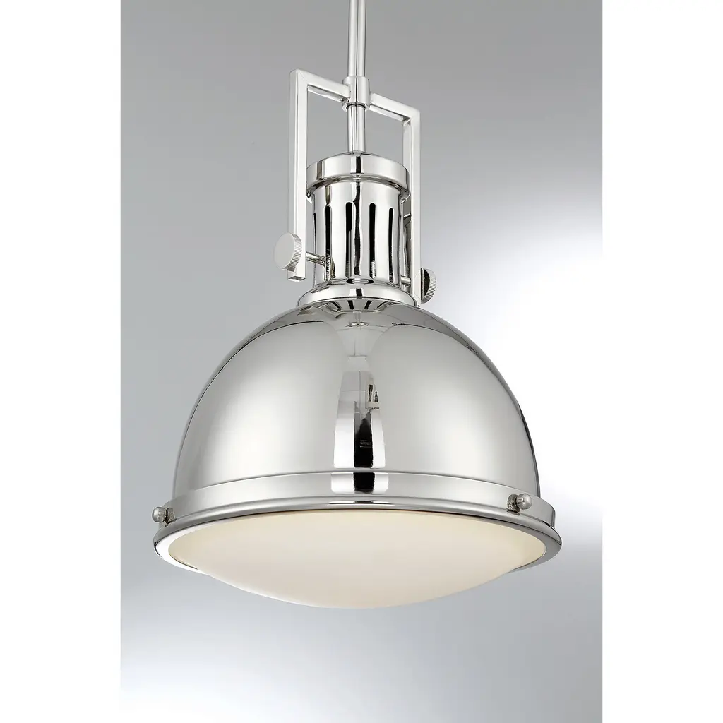 The Savoy House Chival pendant is a great example of industrial-chic style, featuring vintage details and an understated, practical design finished in polished nickel. White opal etched glass just adds to the charm and one 60W standard size bulb provides plenty of illumination. At 11" wide and 17" high with an adjustable hanging height of up to 45.5", it is terrific to install alone, in pairs or groups.