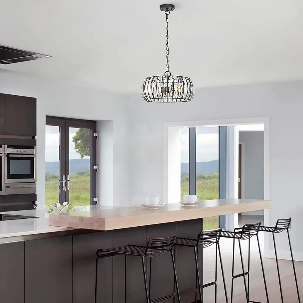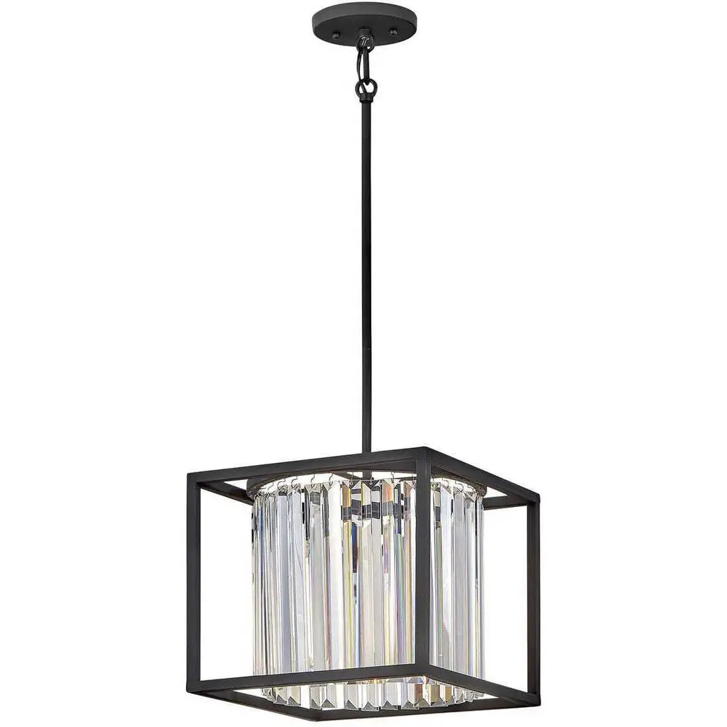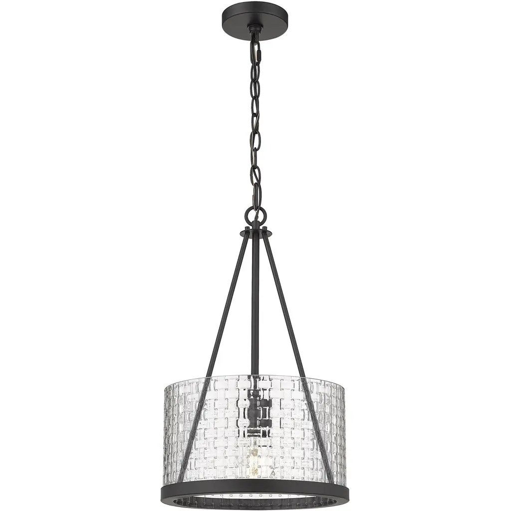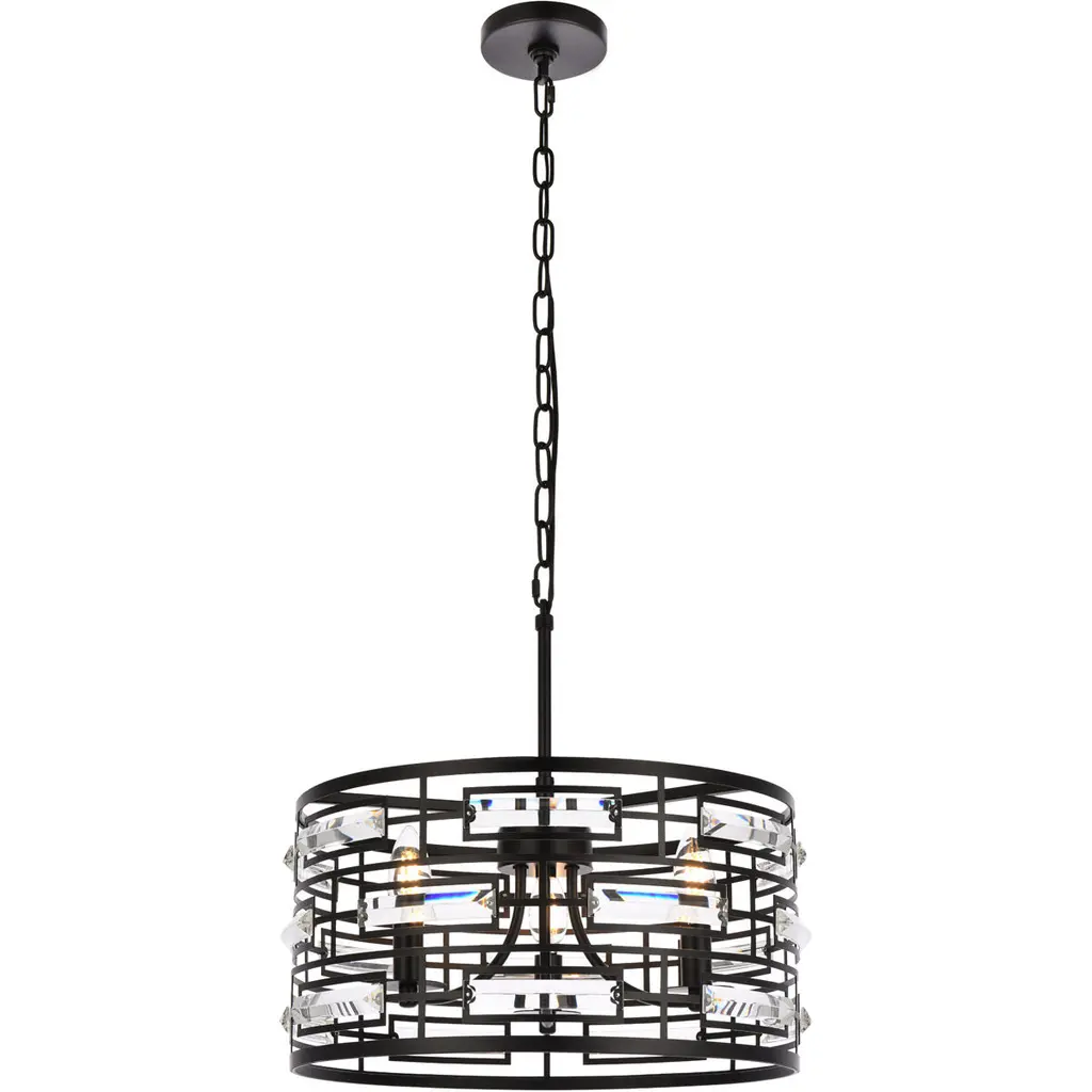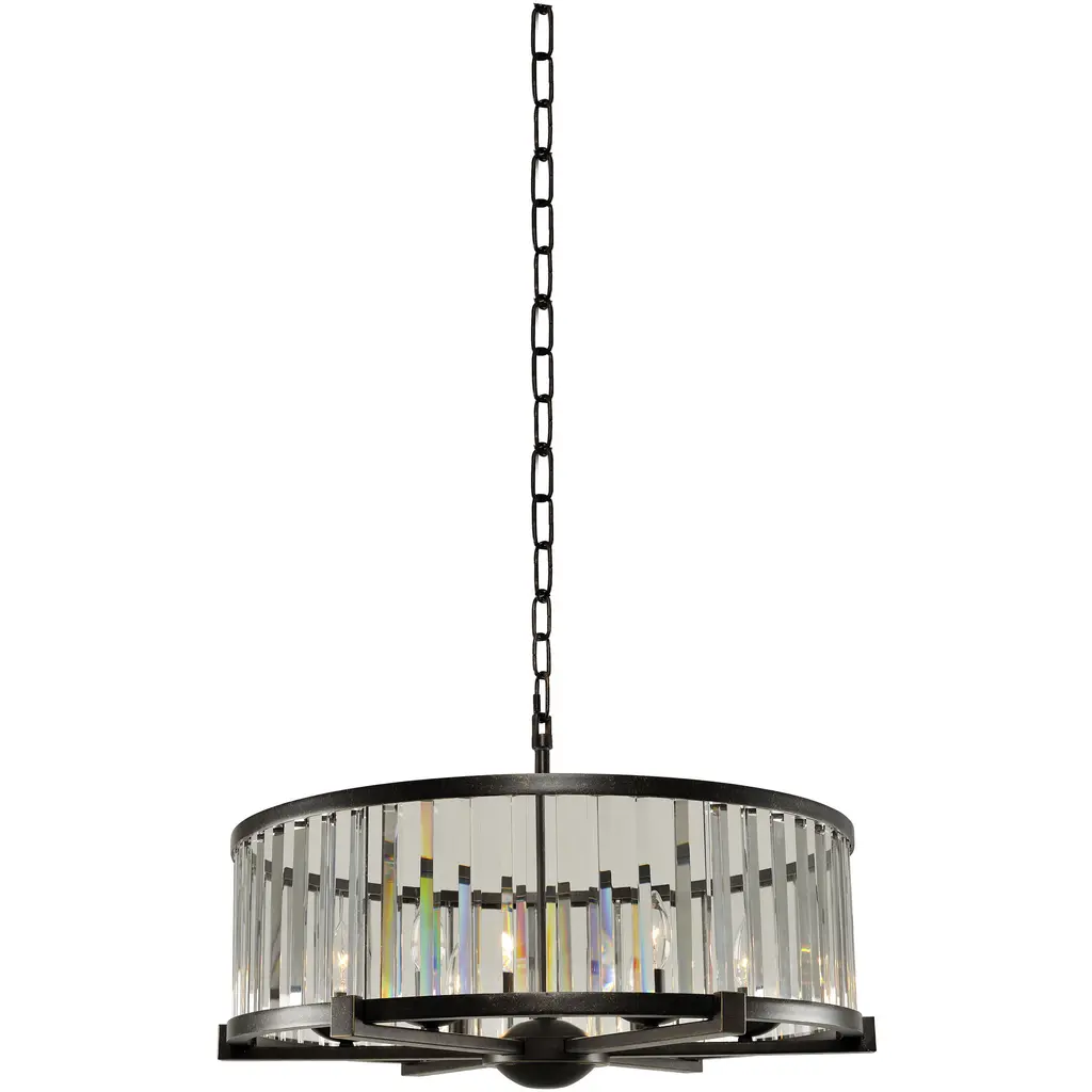 Modernize your home with this absolutley stunning down hanging pendant. This pendant features a drum shape shade, and is outlined with mulitple strips of crystal glass. This rubbed bronze fixture would be wonderful to place in an entry way or dining room. The fixture takes three 100W bulbs with E26 bases. This fixture is only dry approved for indoors.