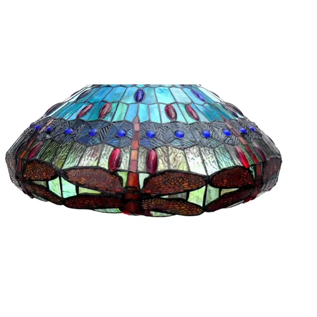 Bring artistry and elegance to any room with the Chloe Lighting Scarlet Tiffany‑Style Dragonfly 3‑Light Hanging Pendant Lamp. The stunning 24″ hand-assembled stained-glass shade showcases a vivid dragonfly motif in rich hues of ruby, emerald, and amber. Crafted with durable bronze-finish metal accents and chain for secure suspension, this pendant creates a warm, diffused glow—ideal for dining areas, living rooms, or entryways. Measuring 24″ in diameter and hanging up to 60″ (adjustable), it blends vintage Tiffany charm with versatile modern appeal, making a striking conversational centerpiece. Key Features: Shade Material: Hand‑assembled stained glass featuring dragonfly motif Finish: Antique bronze metal accents and adjustable chain Dimensions: 24″ diameter shade; adjustable hanging length up to 60″ Style: Tiffany®‑style with classic dragonfly design Installation: Hardwired ceiling mount; UL-listed for safety