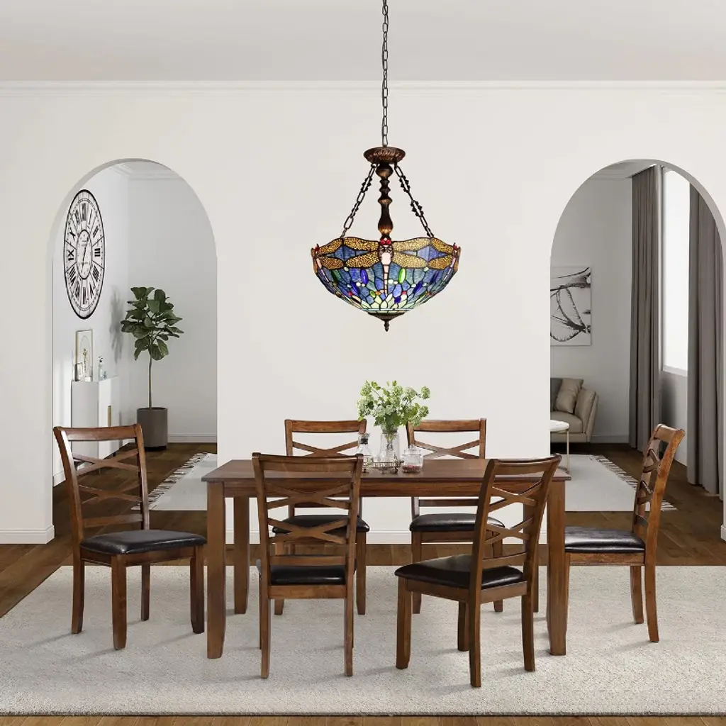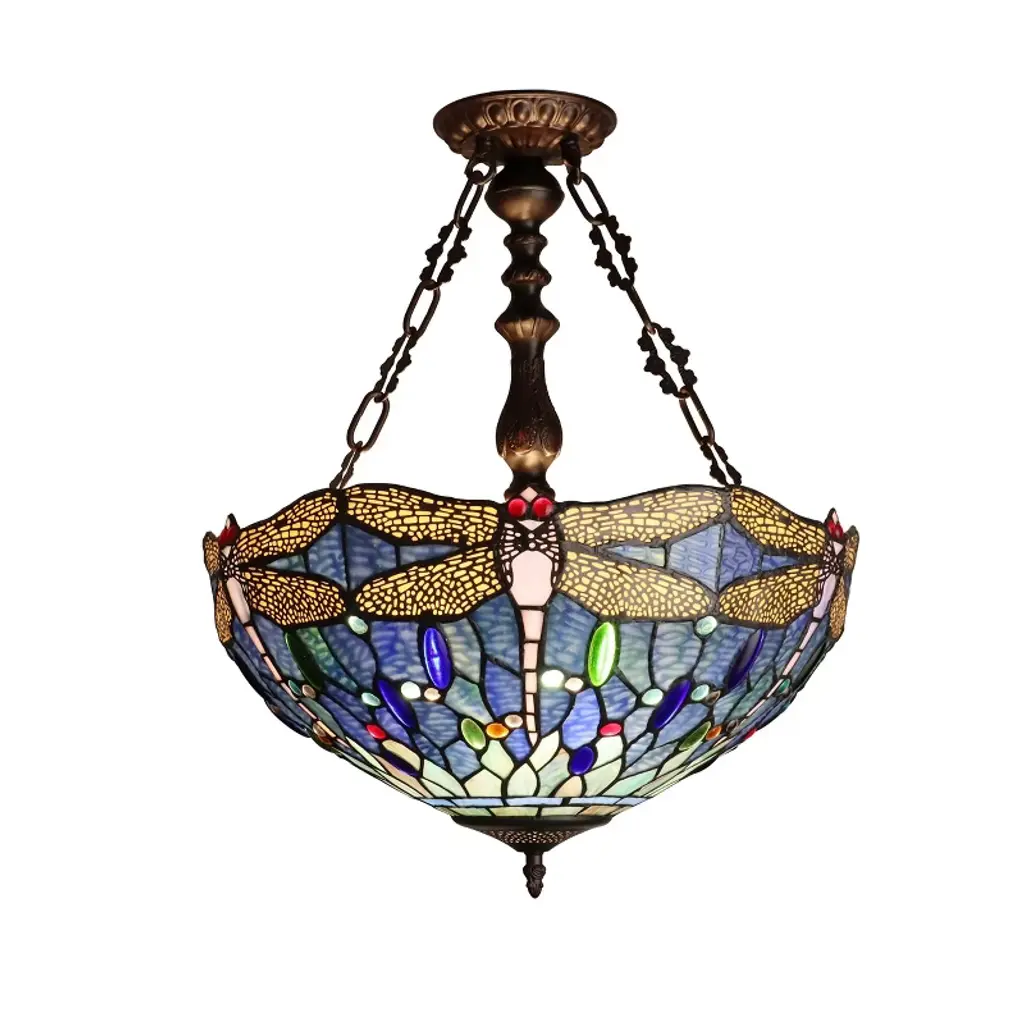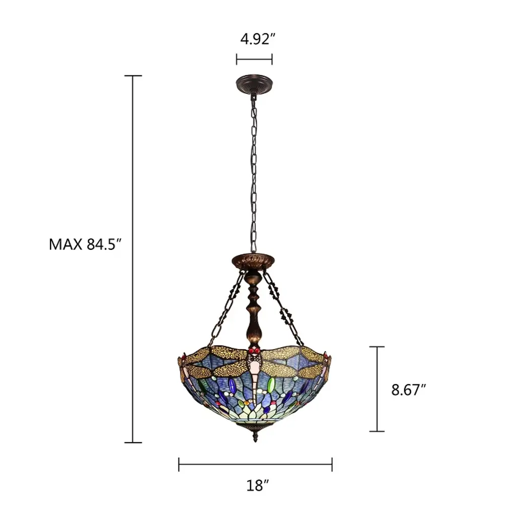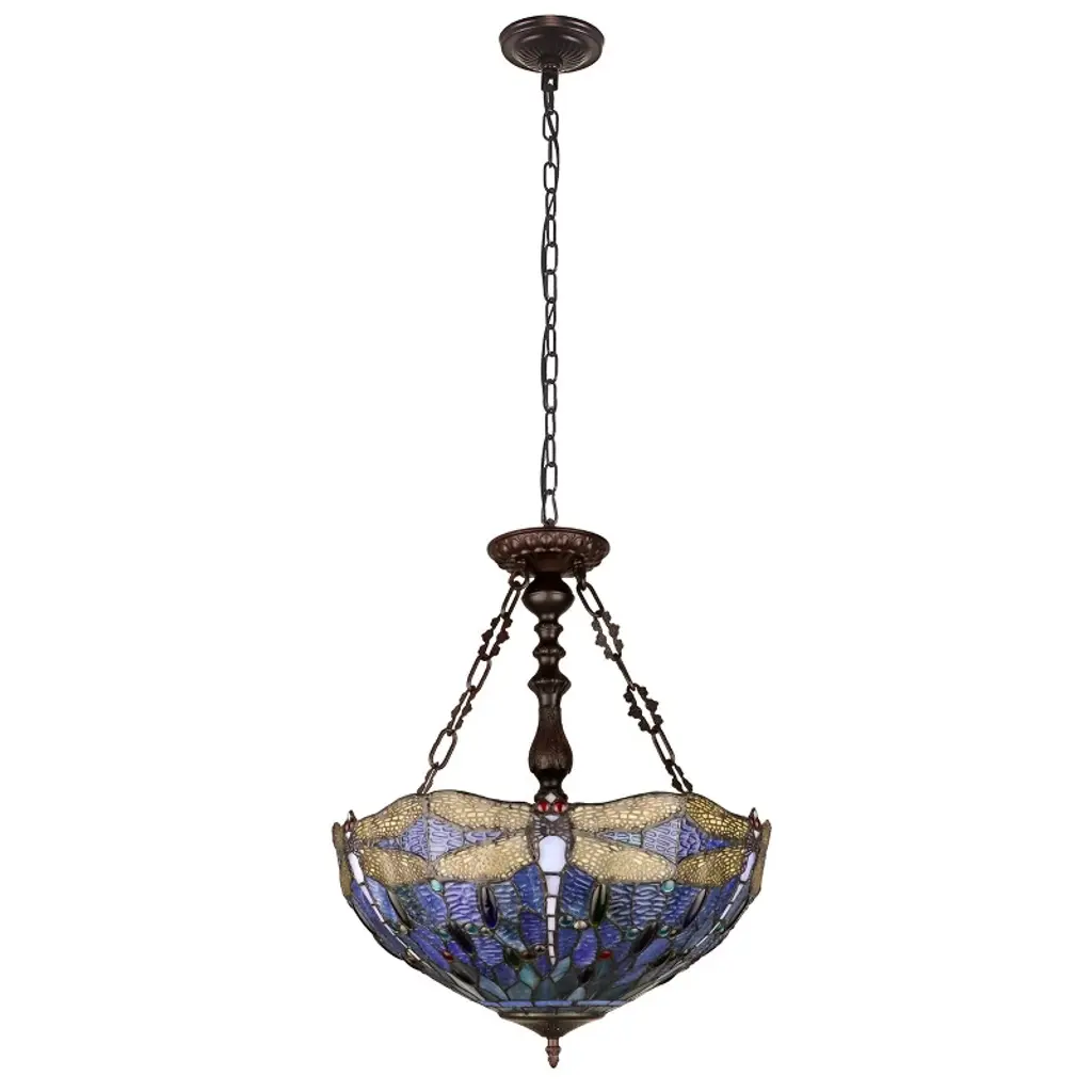 Chloe Lighting Sunniva Dragonfly Tiffany-style 3-light Inverted Ceiling Pendant 18" Shade